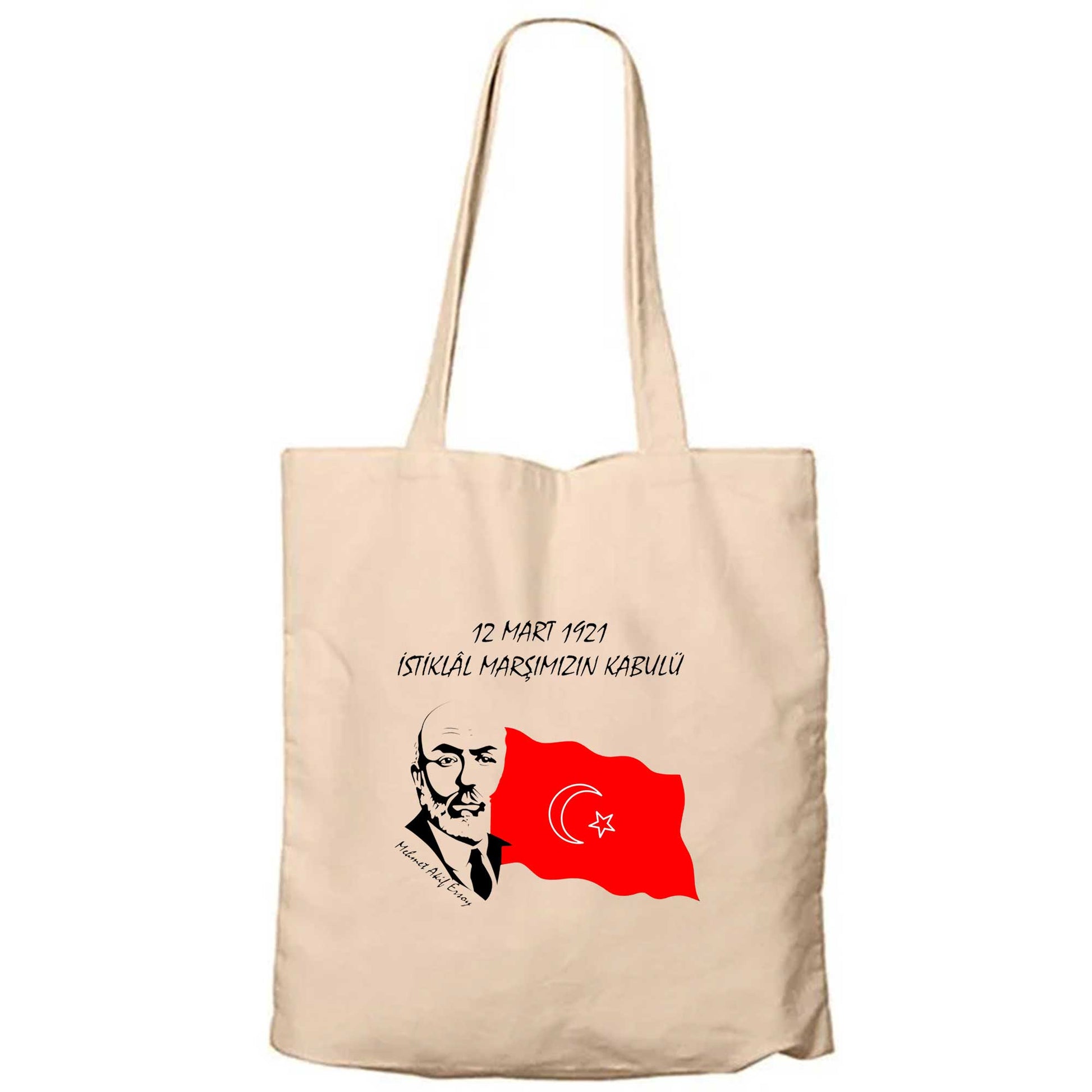 12 Mart 1921 İstiklal Marşın Kabulü Krem Fermuarlı Bez Çanta Gabardin