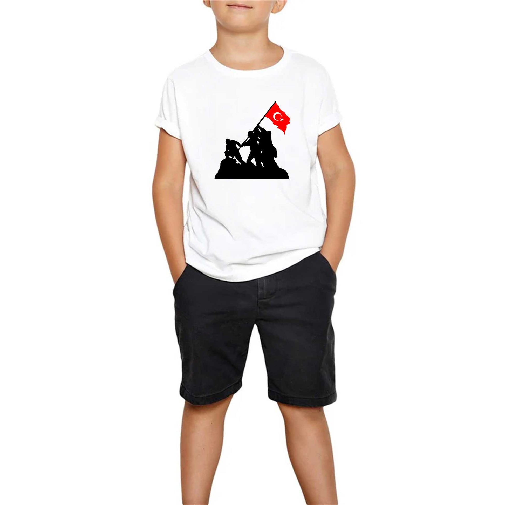 18 Mart Bayrak ve Destan Beyaz Çocuk Tişört