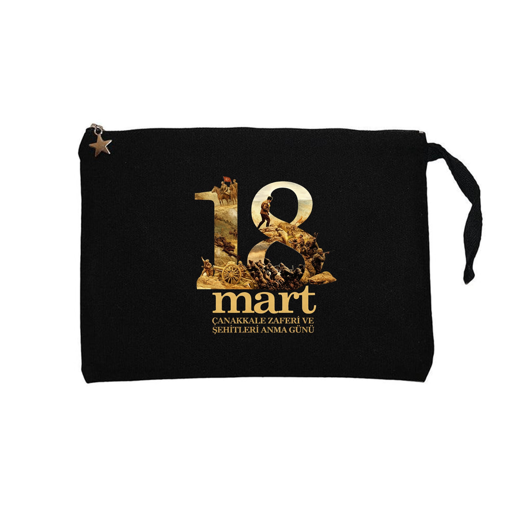 18 Mart Çanakkale Zaferi ve Şehitleri Siyah Clutch Astarlı Cüzdan / El Çantası
