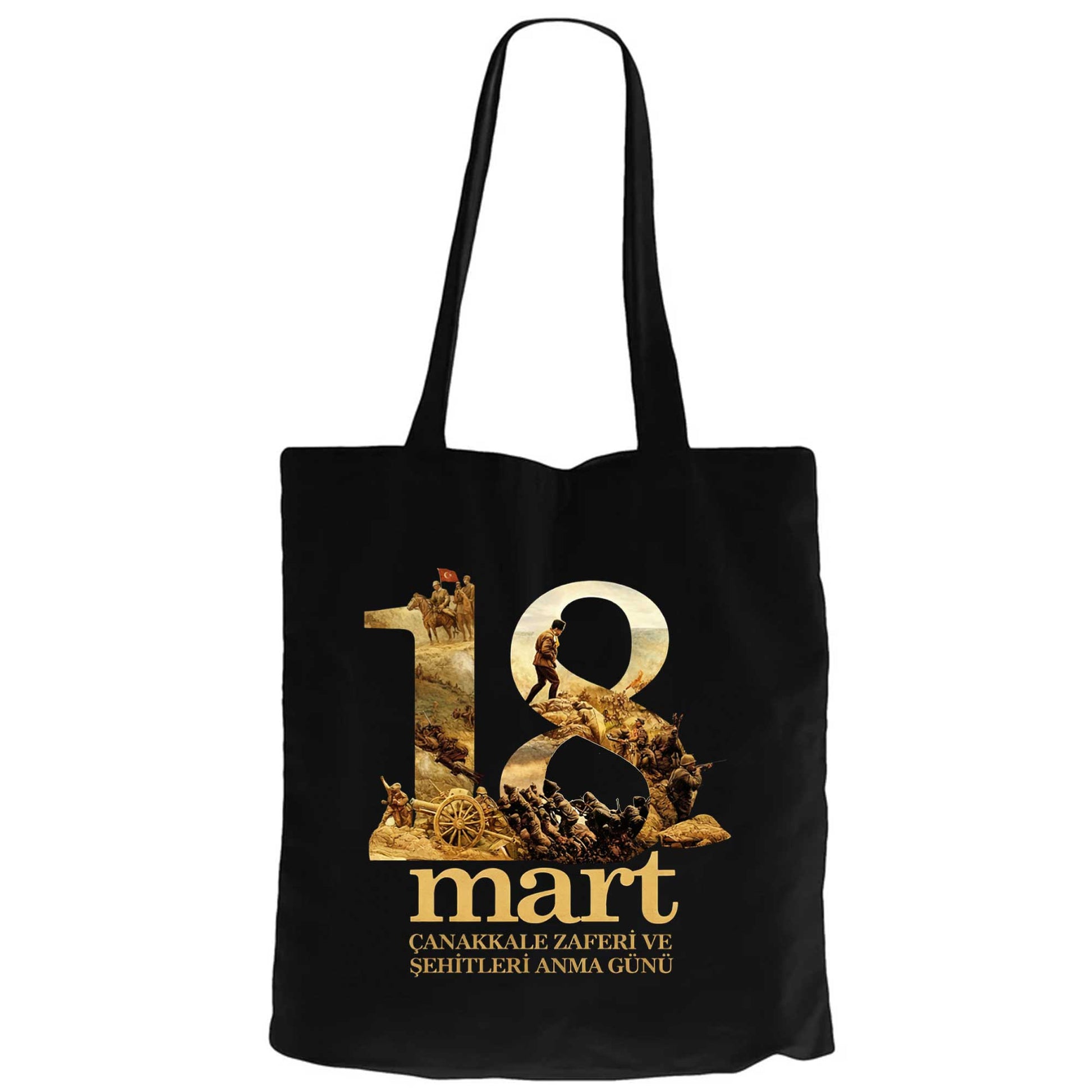 18 Mart Çanakkale Zaferi ve Şehitleri Siyah Fermuarlı Bez Çanta Gabardin