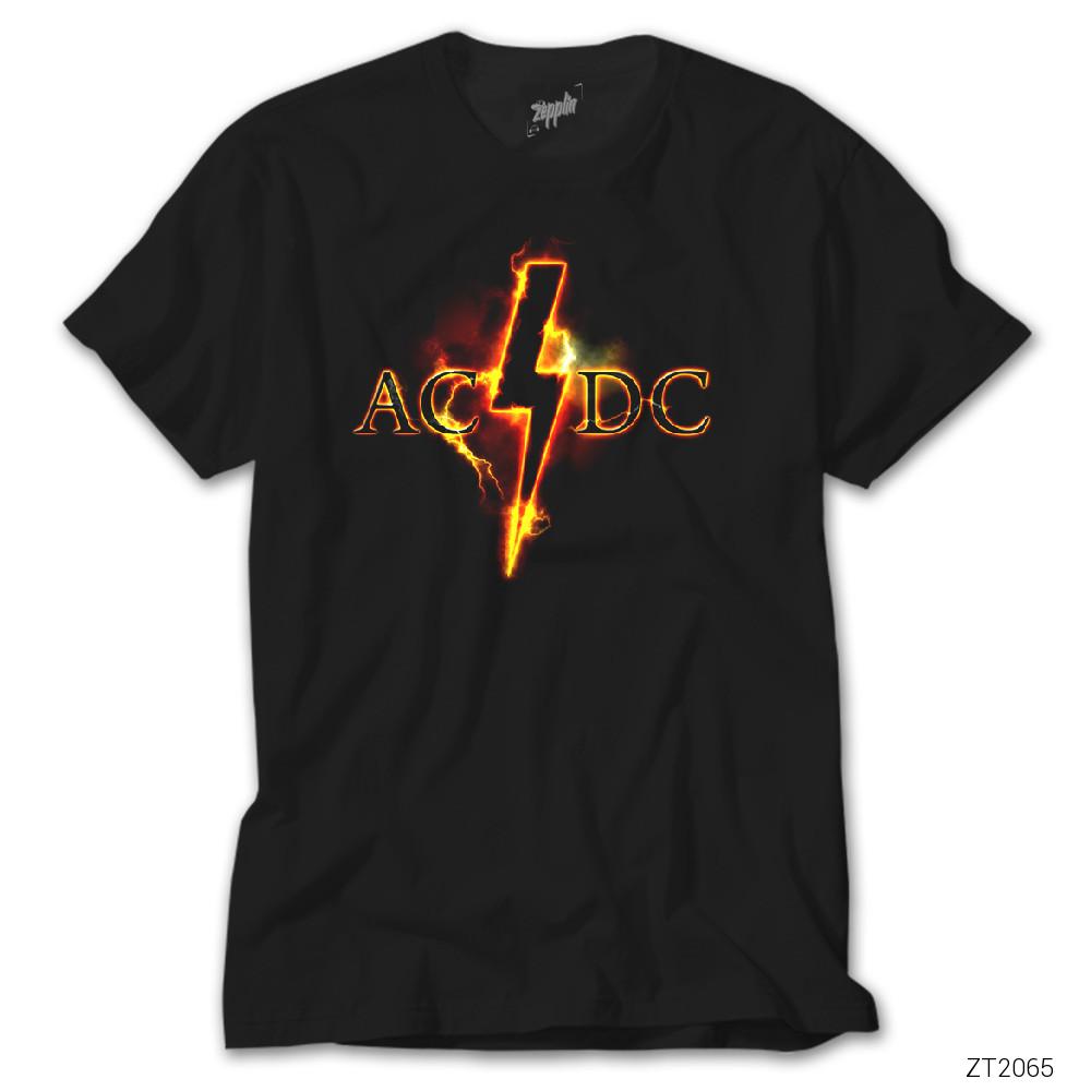 AC DC Fire Lighting Siyah Tişört