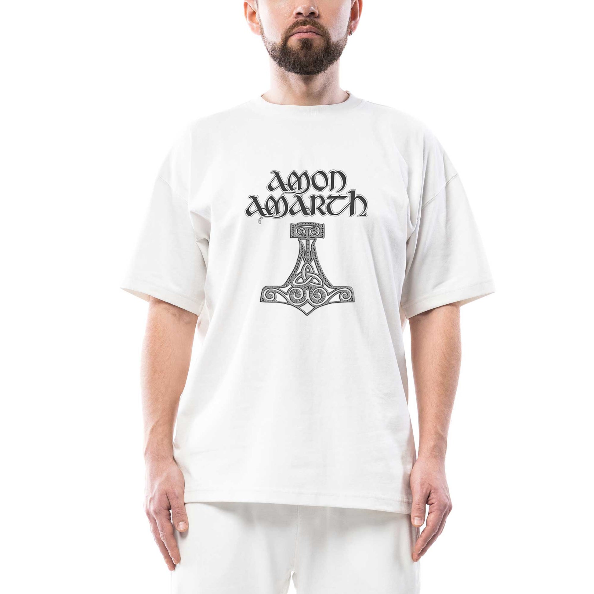 Amon Amarth Mjolnir Oversize Beyaz Tişört