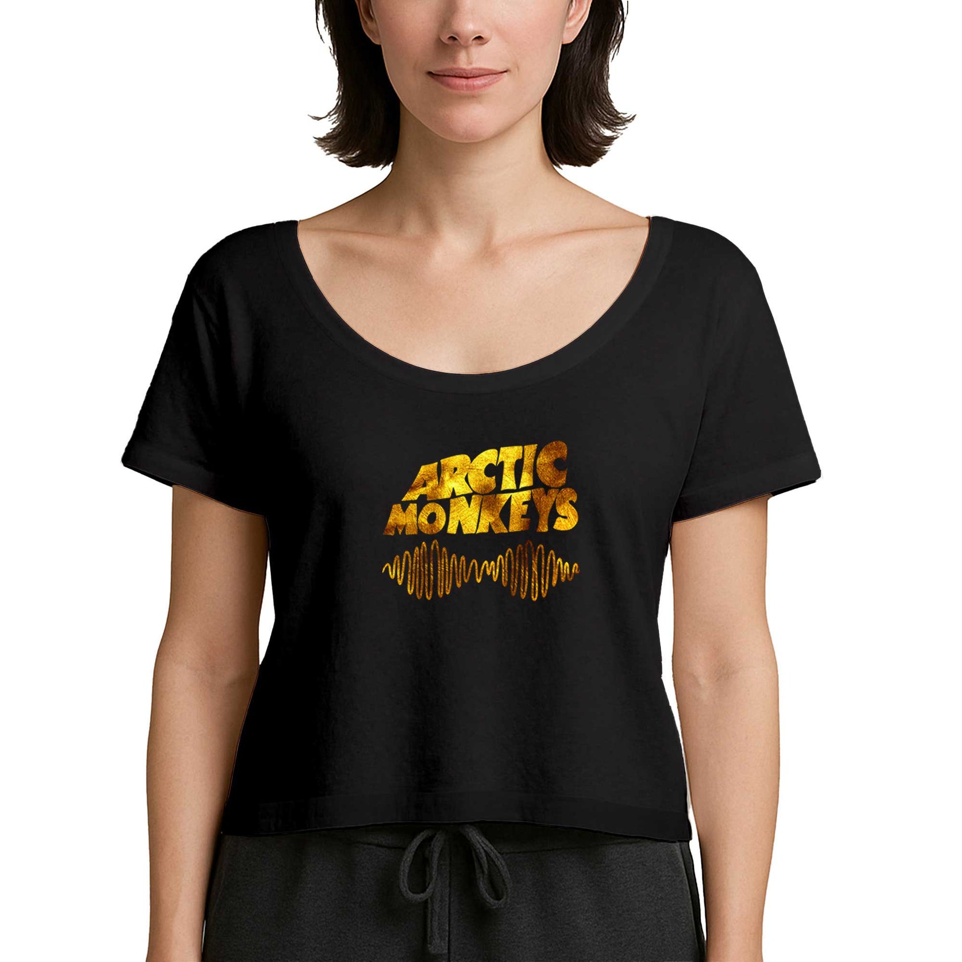 Arctic Monkeys Logo Wave Gold Siyah Kadın Tişört