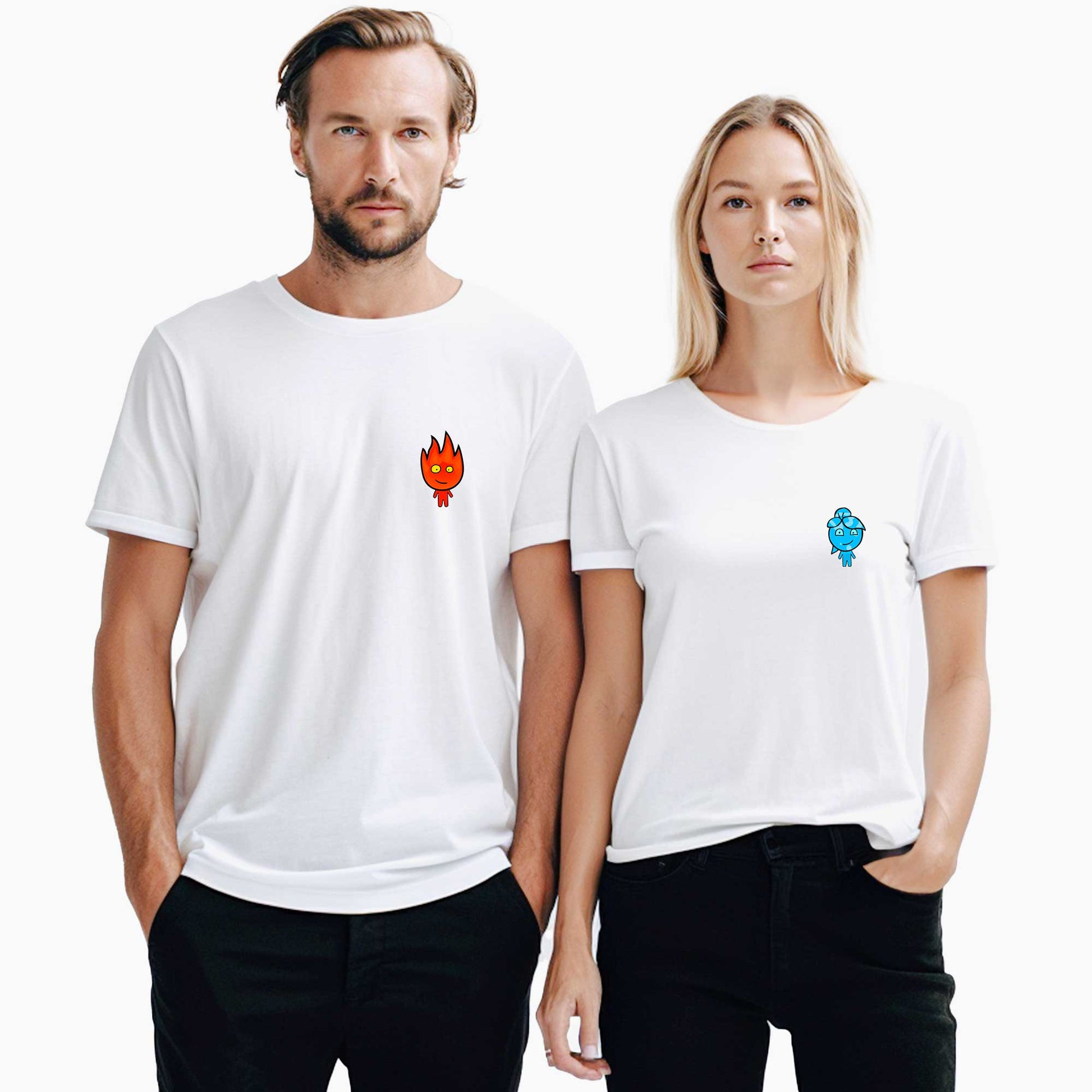 Ateş ve Su Sevgili Çift Beyaz Tişört
