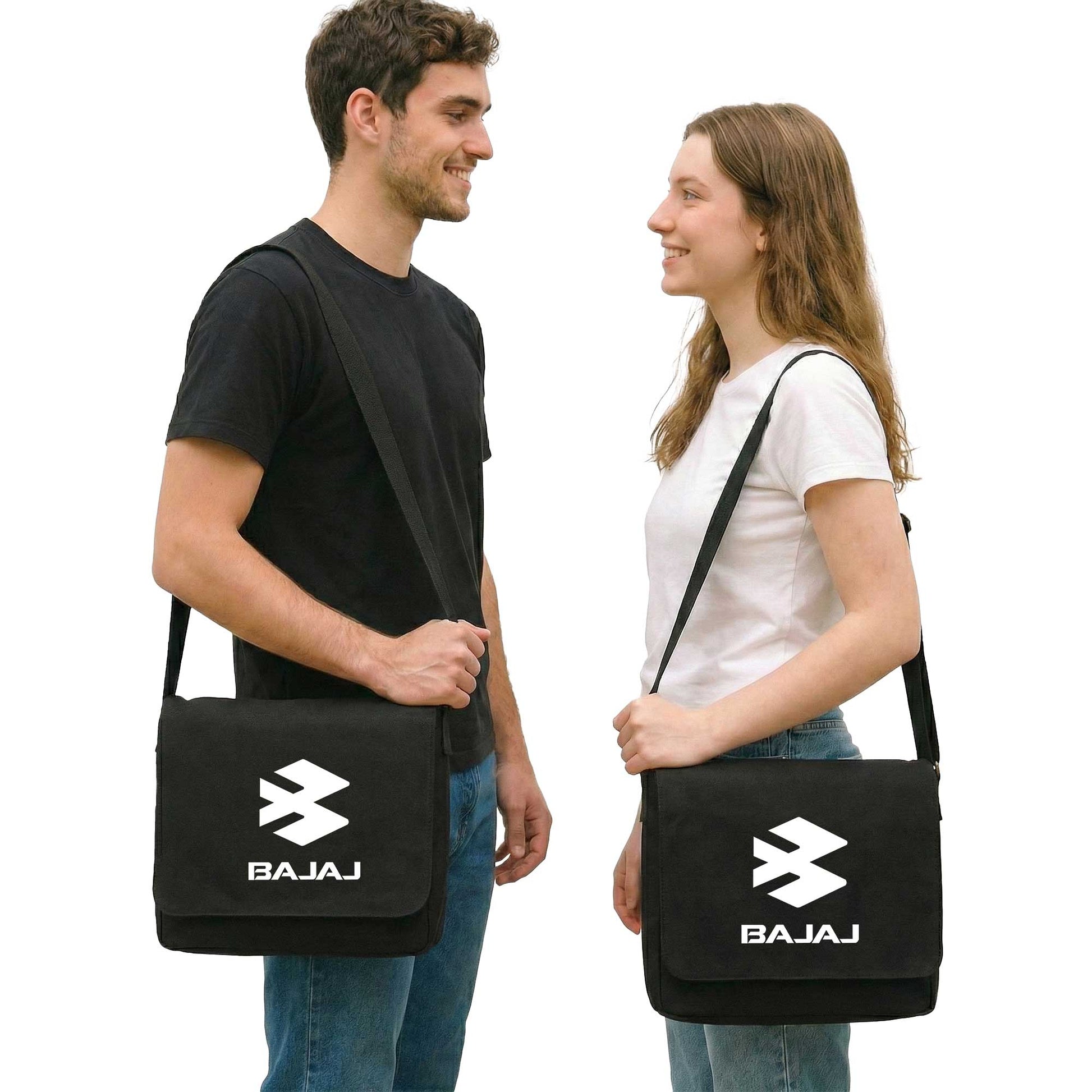 Bajaj White Logo Sevgili Çift Postacı Çantası Kanvas