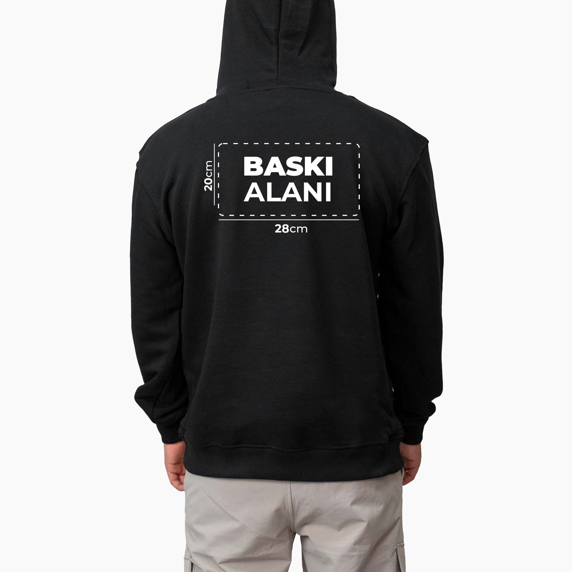 • Kapşonlu için ön maksimum baskı alanı ölçüsü 10x10 cm’ dir. Arka Kapşonlu baskısı 28x20 cm'dir. Daha büyük baskı alanı için ek ücret alınarak baskı yapılabilmektedir. Full zemin baskı (standart üstü boya kullanımına sebep olacak işler, 0,5 cc üzeri boya kullanımlarında) işlerinizde ek ücret alınarak baskı yapılabilmektedir. Tasarımınızın full zemin olup olmadıgından emin olmak için müşterı temsilcilerimizden destek alabilirsiniz.