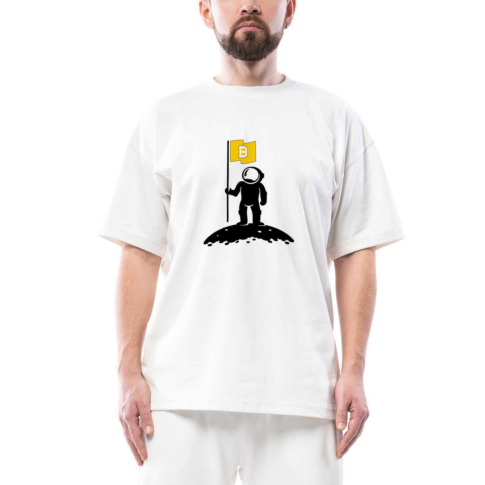 Bitcoin Kripto Para Astronot Oversize Beyaz Tişört