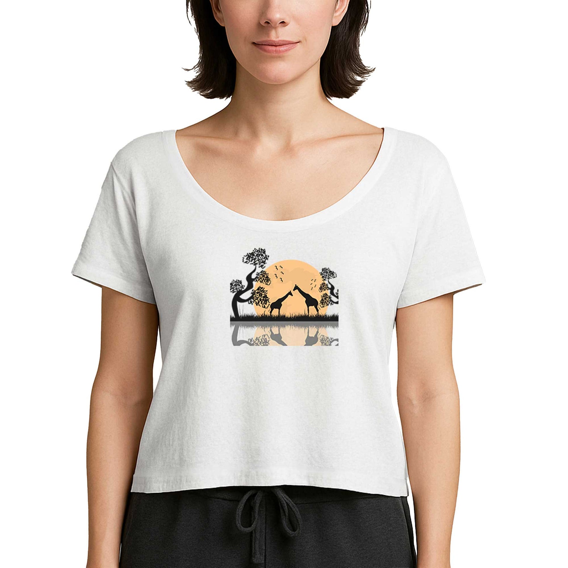 Black Giraffes Reflections Beyaz Kadın Tişört