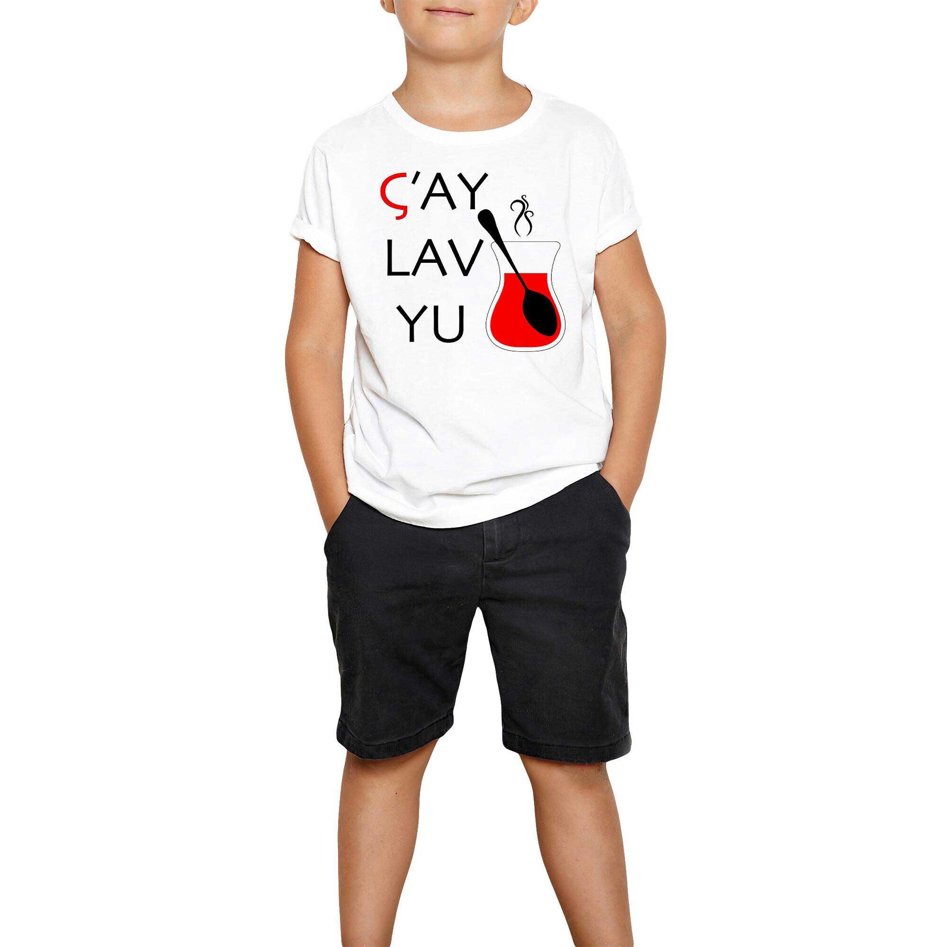 Çay Lav Yu Beyaz Çocuk Tişört