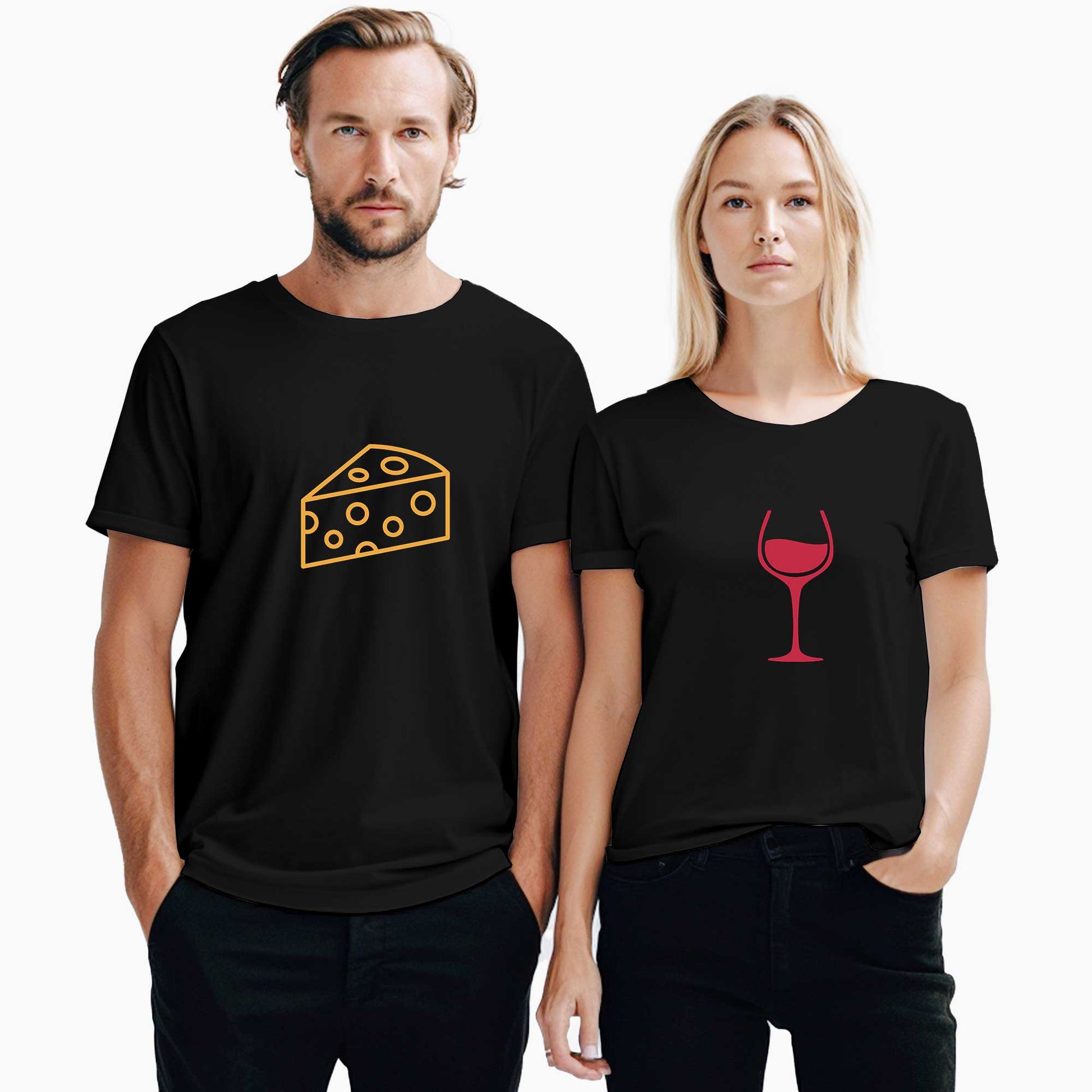 Cheese and Wine Sevgili Çift Siyah Tişört