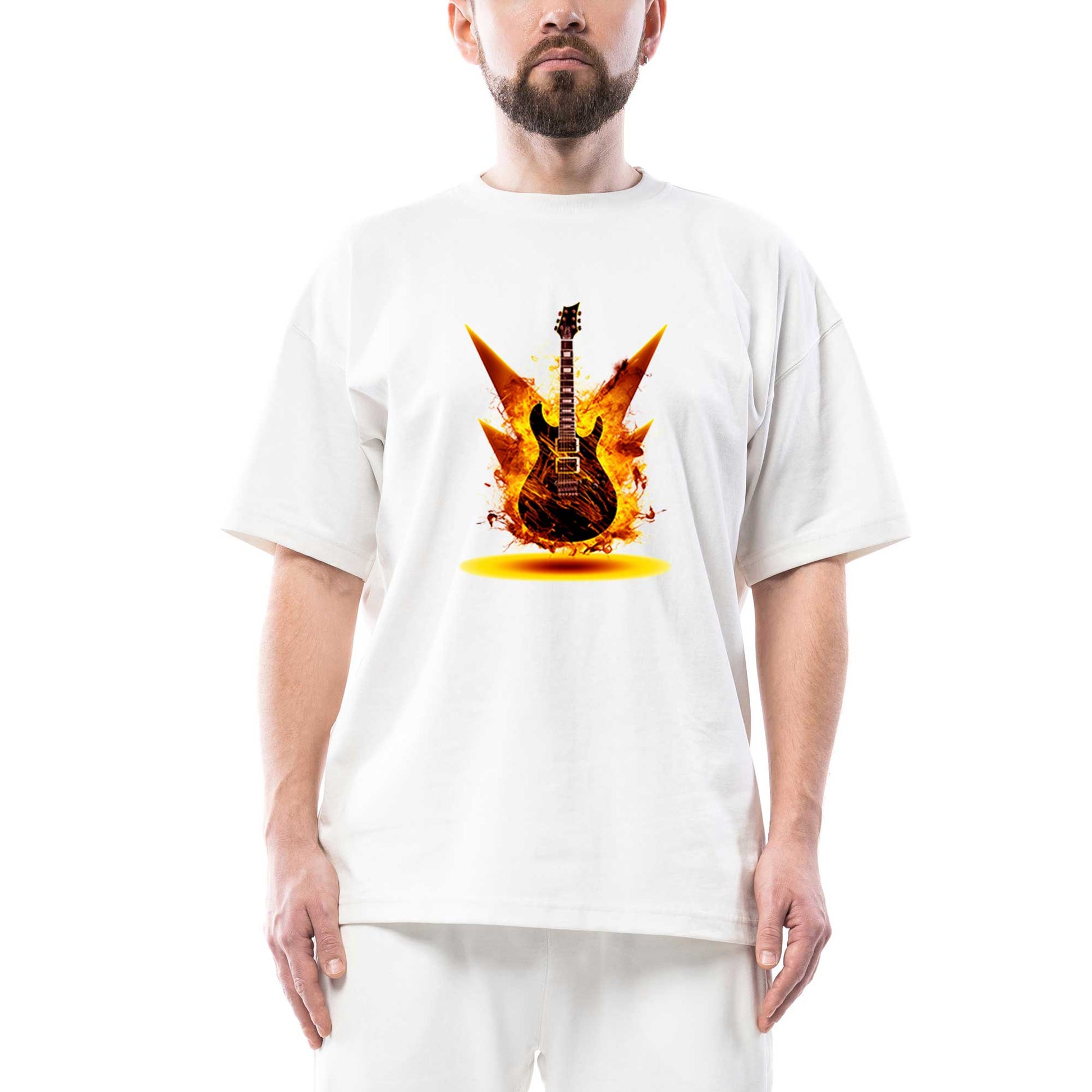 Classic Guitar Yellow Fire Oversize Beyaz Tişört