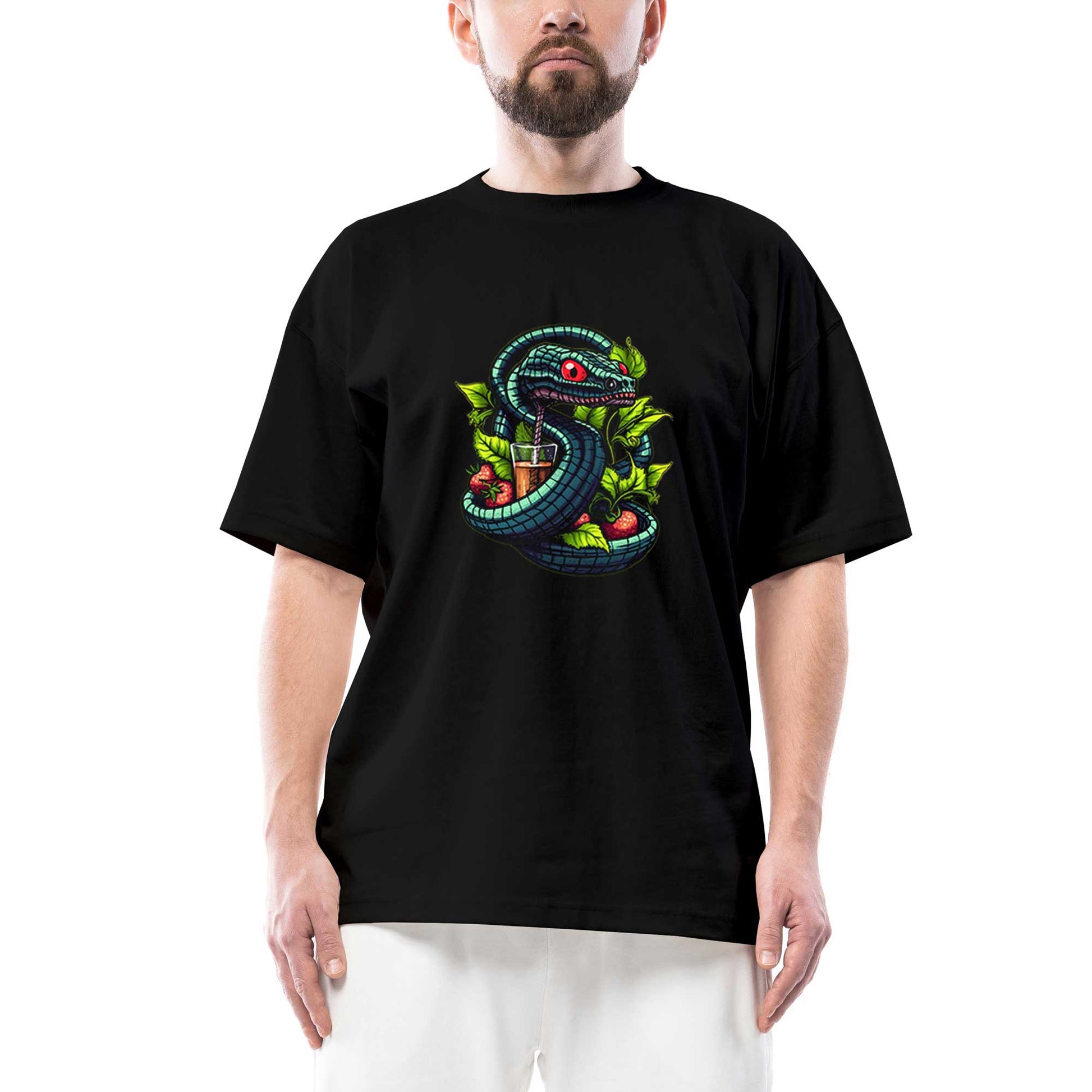 Cocktail and Snake Oversize Siyah Tişört