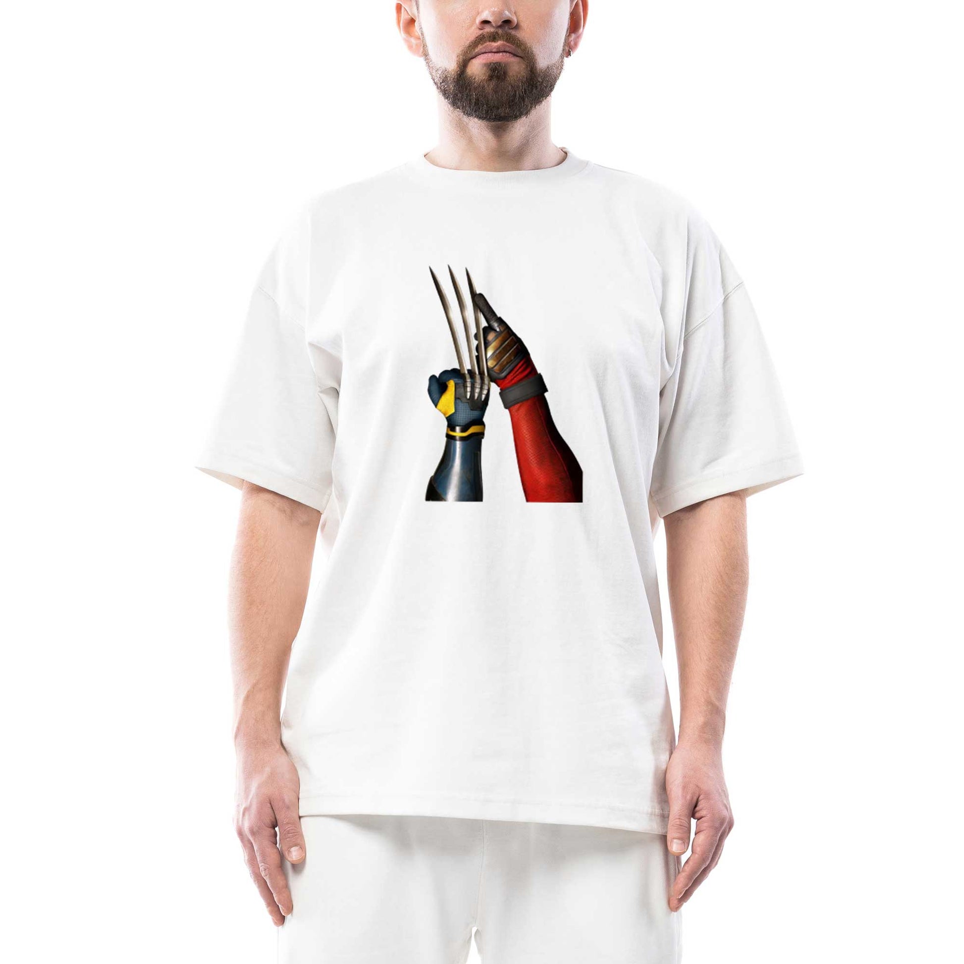 Deadpool Wolverine Poster Oversize Beyaz Tişört