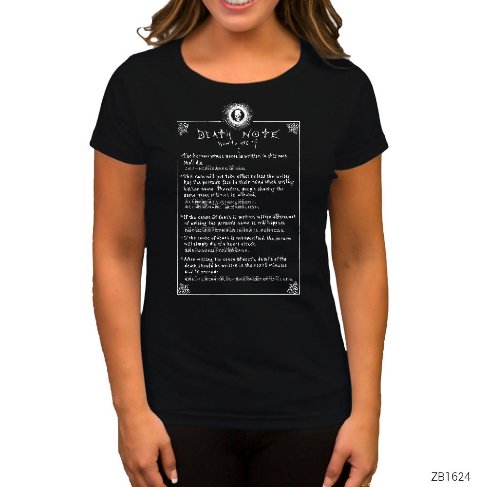 Death Note How to Use Siyah Kadın Tişört