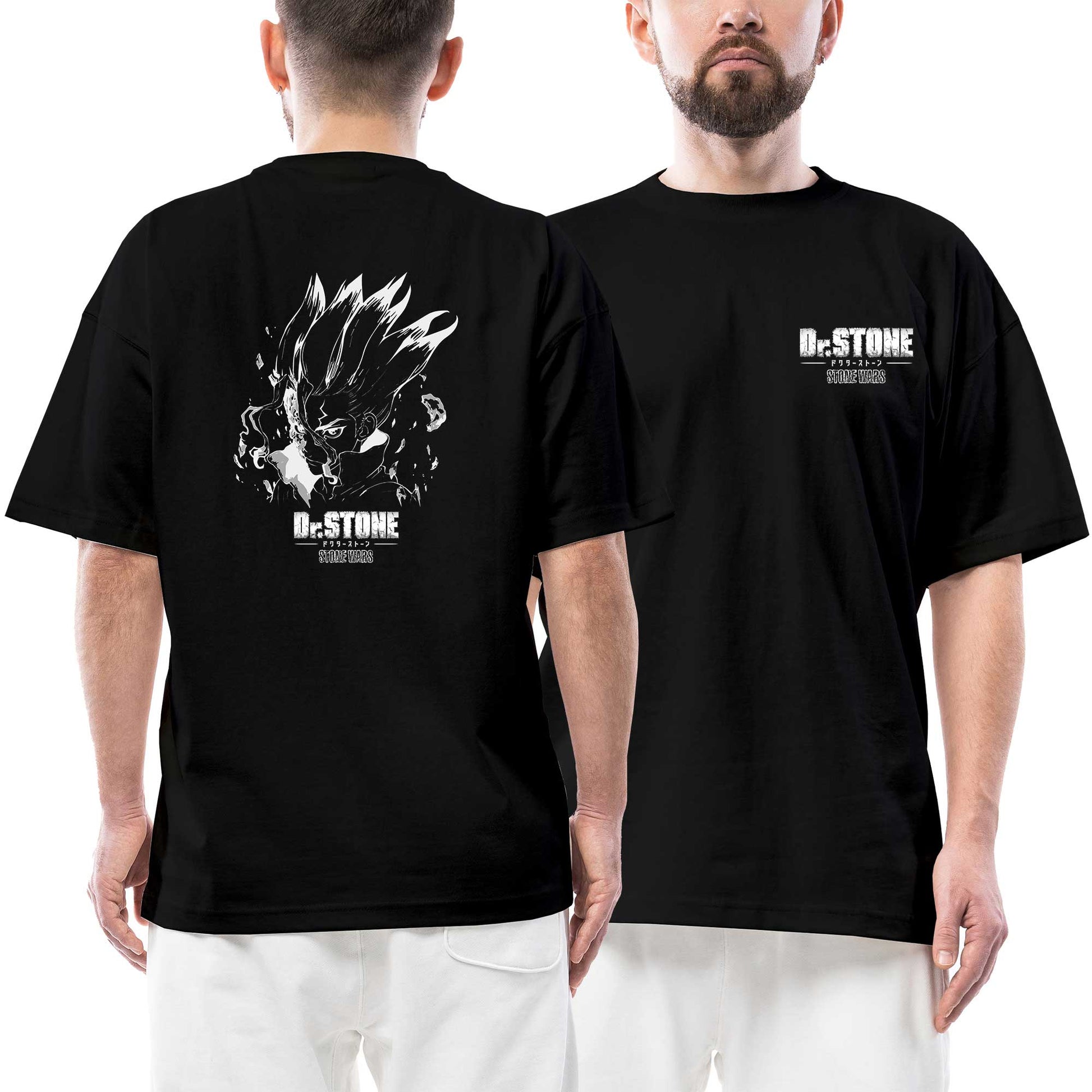 Dr. Stone Face Ön Arka Baskılı Siyah Oversize Tişört