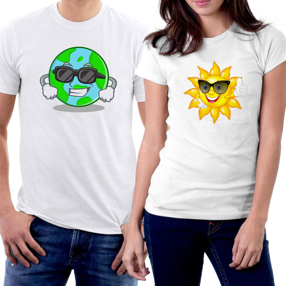 Dünya ve Güneş Sevgili Çift Beyaz Tişört