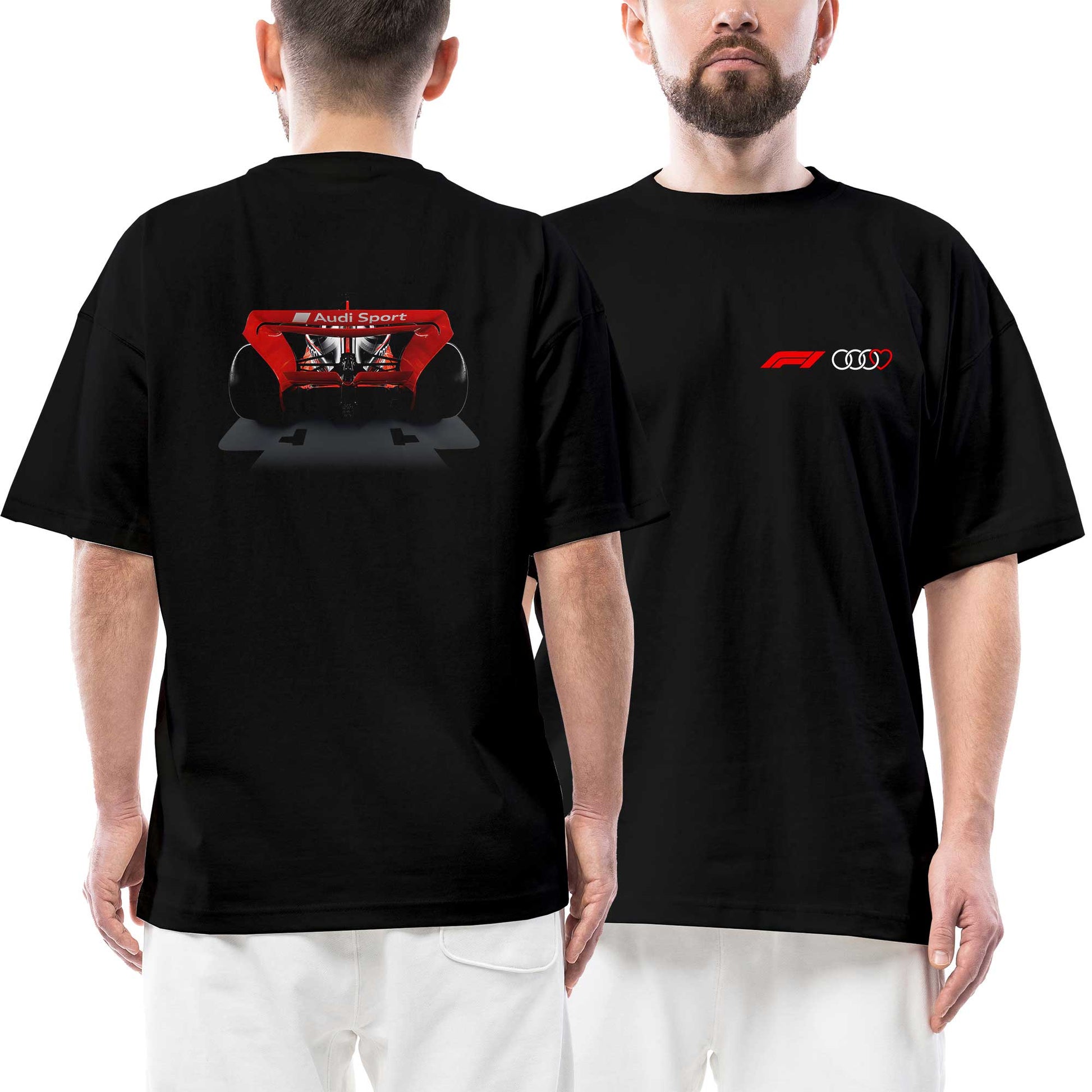 F1 Audi Sport Back Ön Arka Baskılı Siyah Oversize Tişört