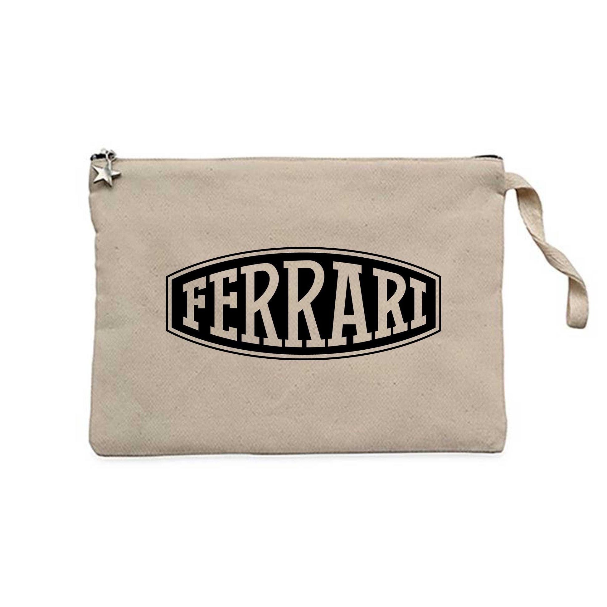 Ferrari Logo Text Krem Clutch Astarlı Cüzdan / El Çantası
