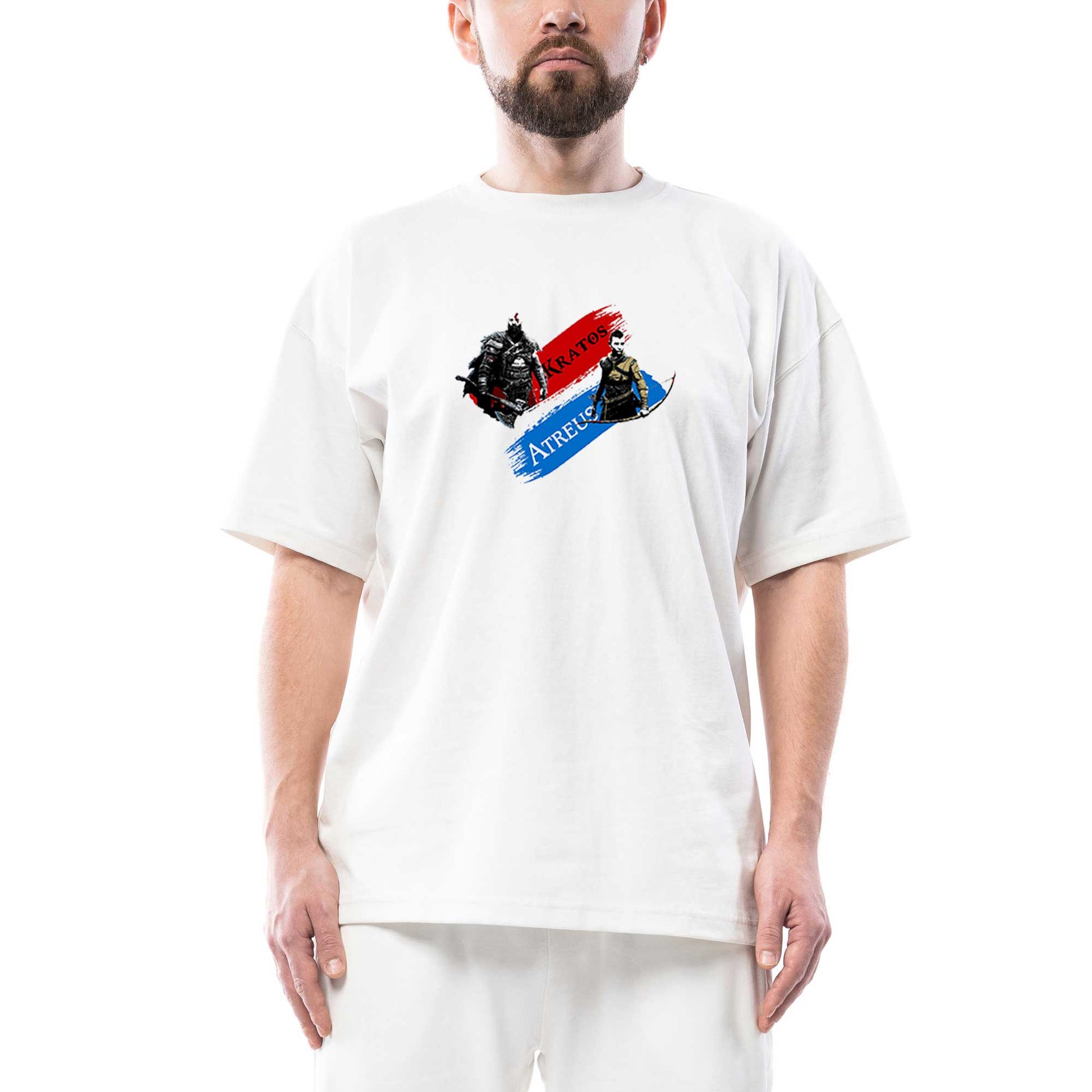 God Of War Atreus Kratos Oversize Beyaz Tişört
