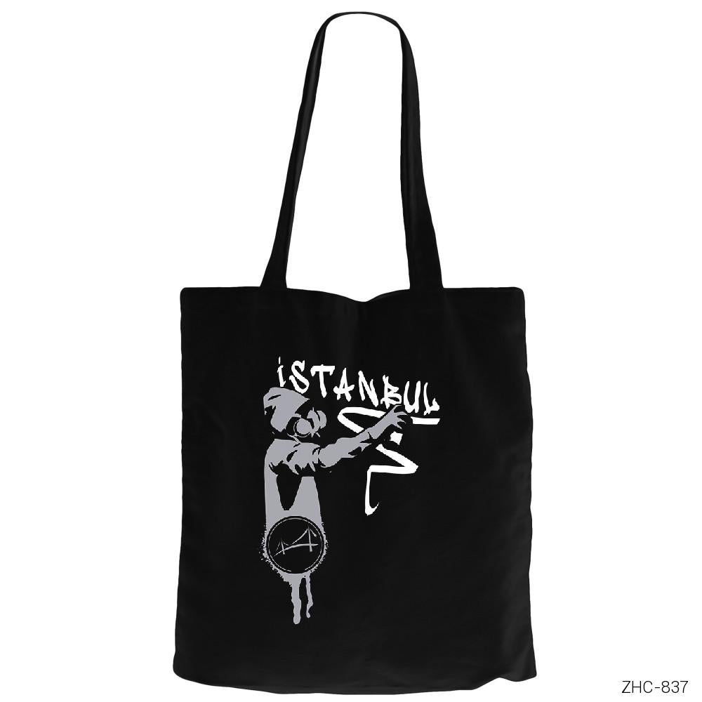 Graffiti İstanbul Siyah Fermuarlı Bez Çanta Gabardin
