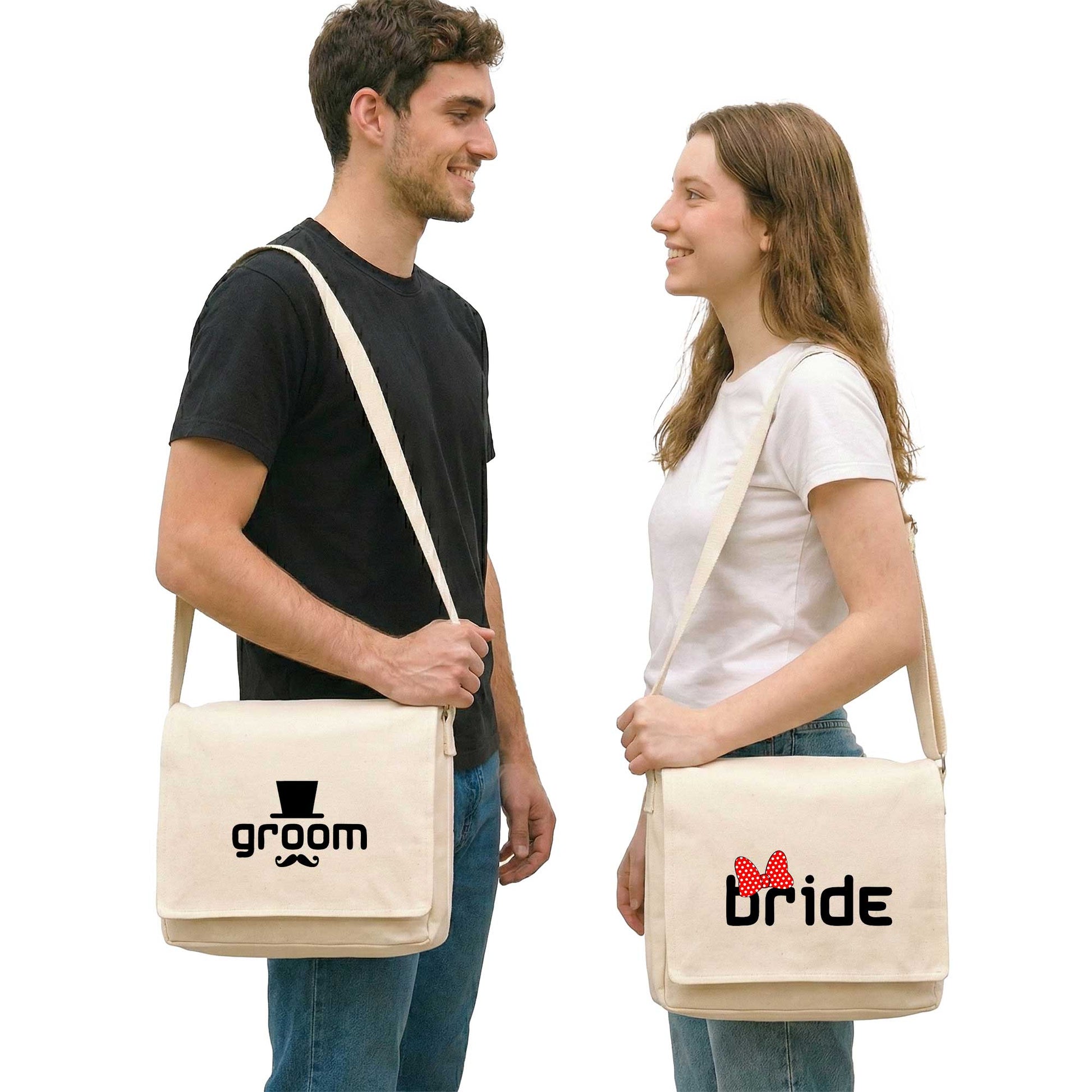Groom Bridge Sevgili Çift Postacı Çantası Kanvas