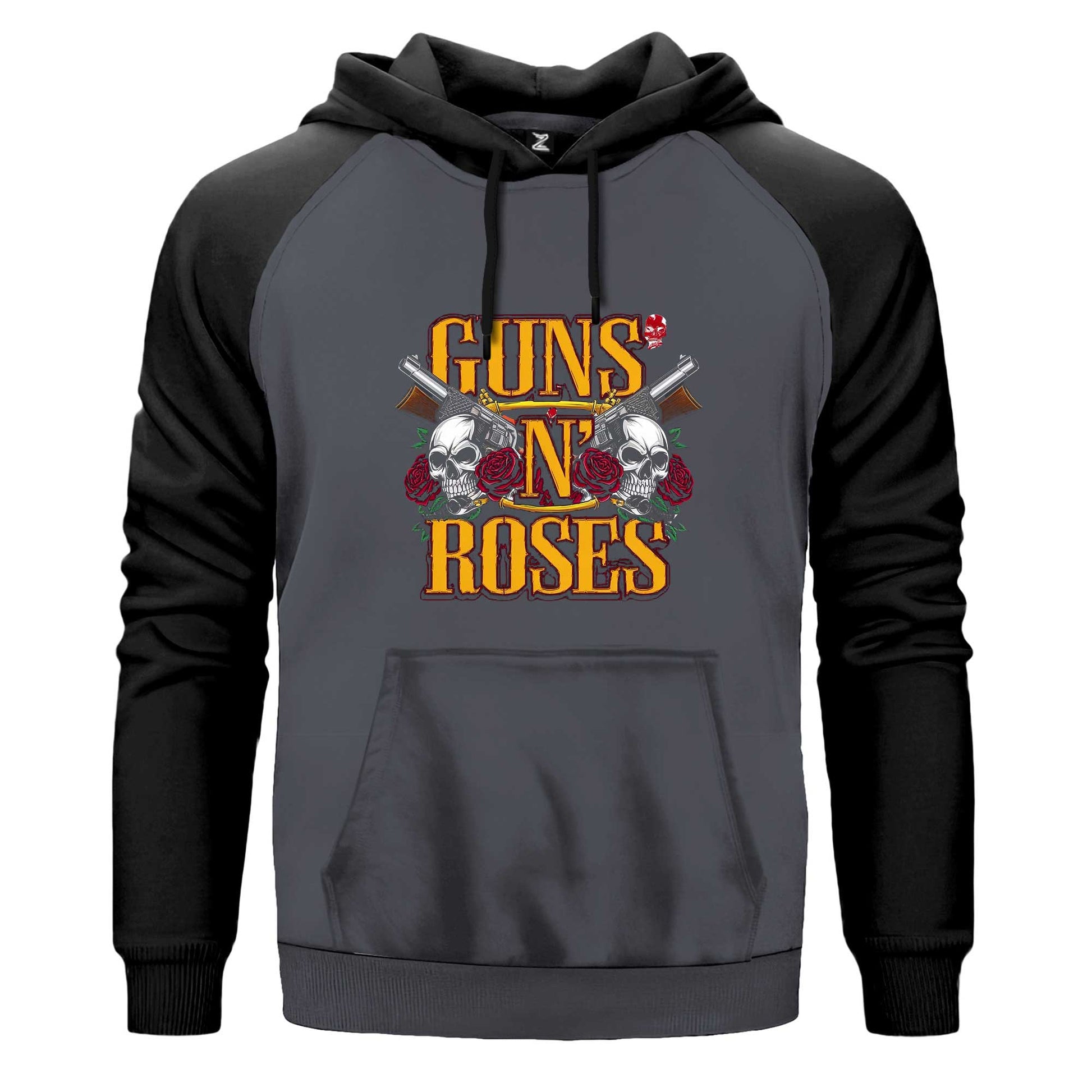 Guns N Roses YazılI Logo Çift Renk Reglan Kol Sweatshirt Kapşonlu