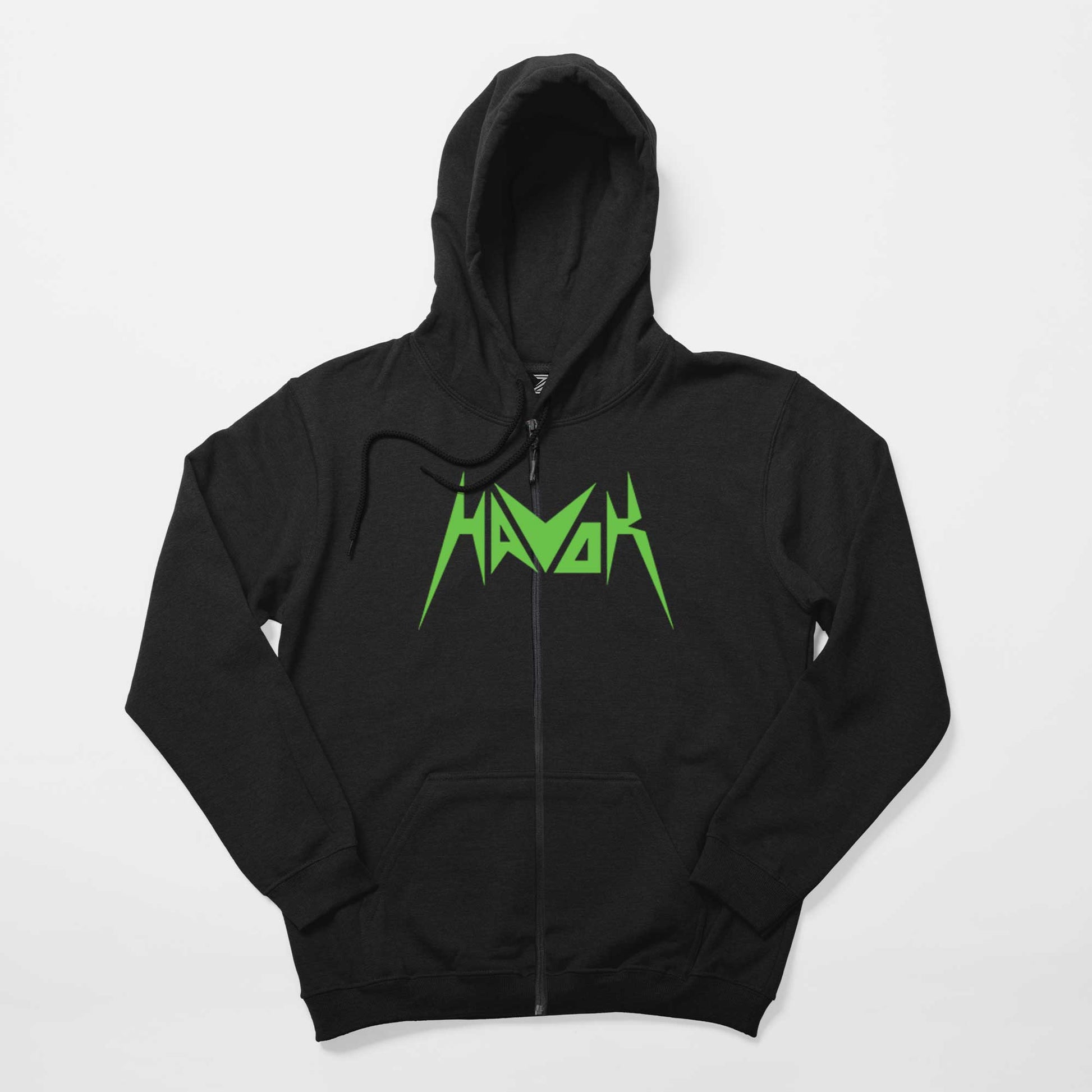 Havok Green Logo Siyah Fermuarlı Kapşonlu Sweatshirt