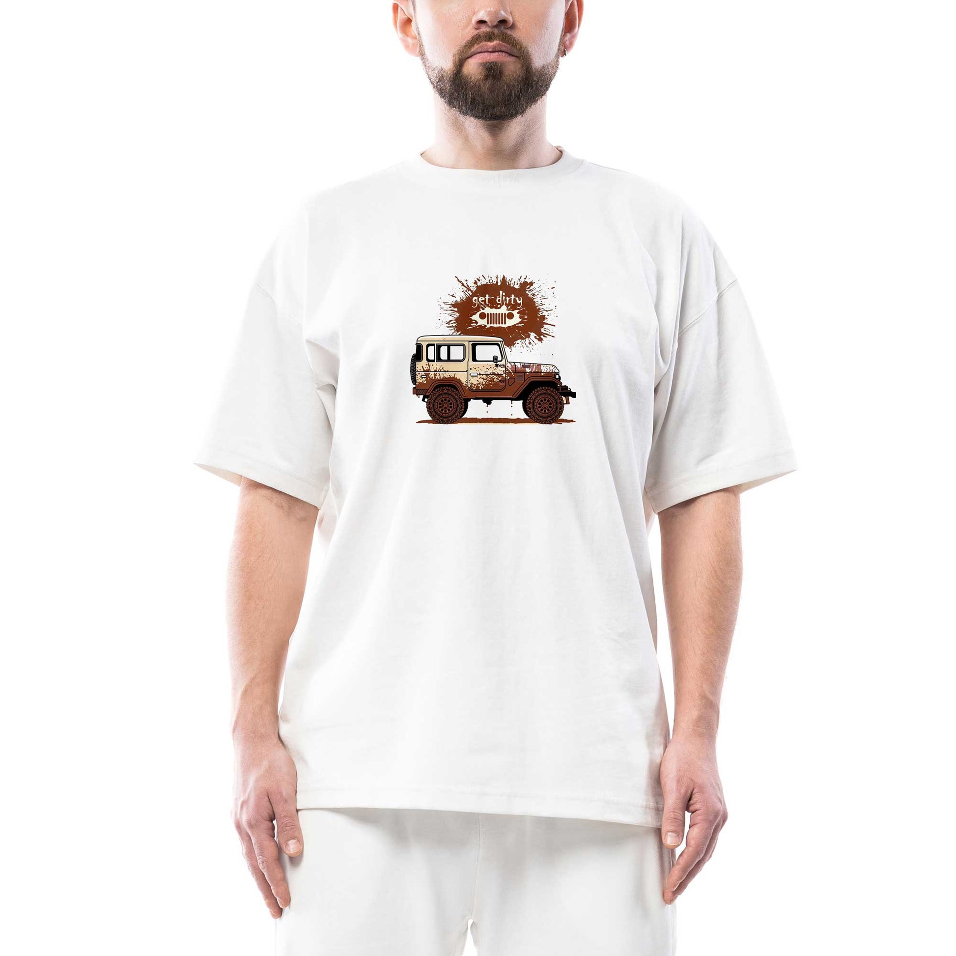 Jeep Get Dirty Oversize Beyaz Tişört