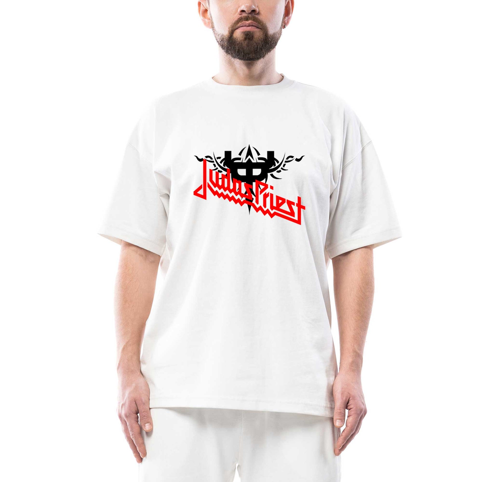 Judas Priest Logo and Figure Oversize Beyaz Tişört