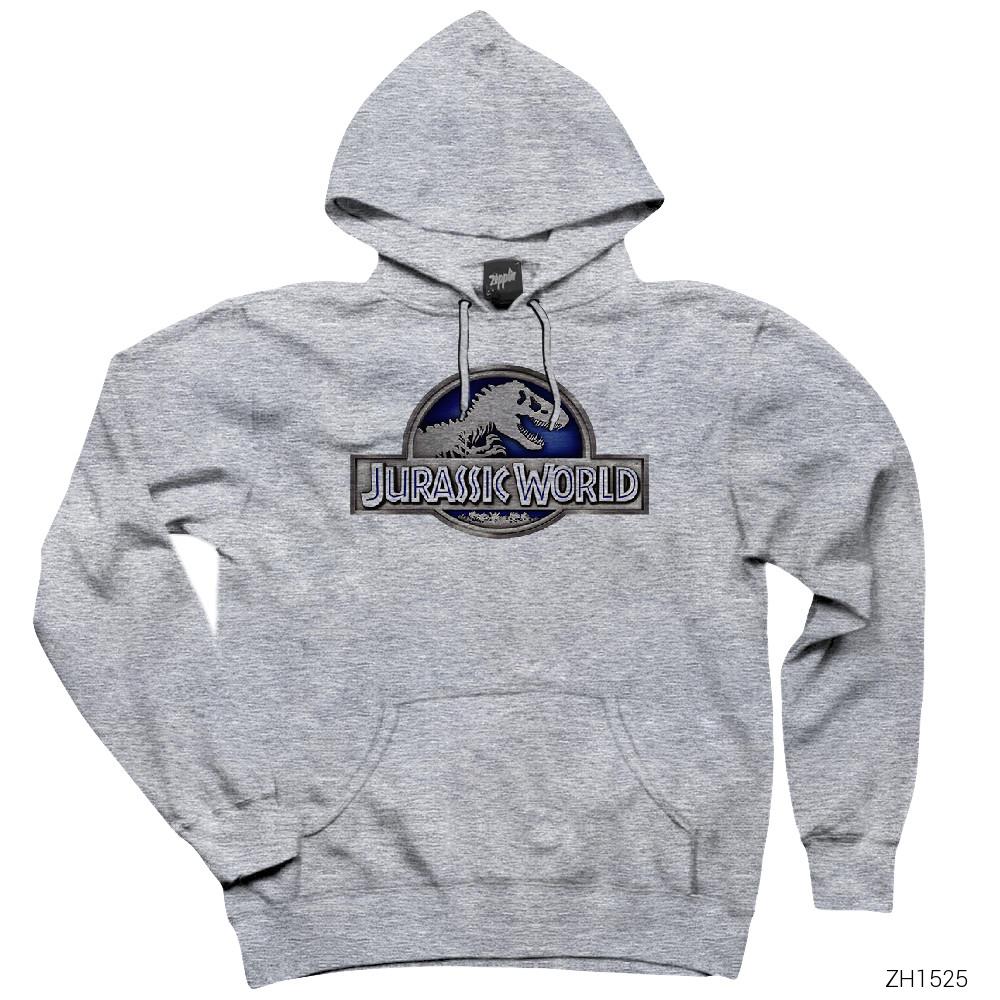 Jurassic Park Blue Gri Kapşonlu Sweatshirt Hoodie