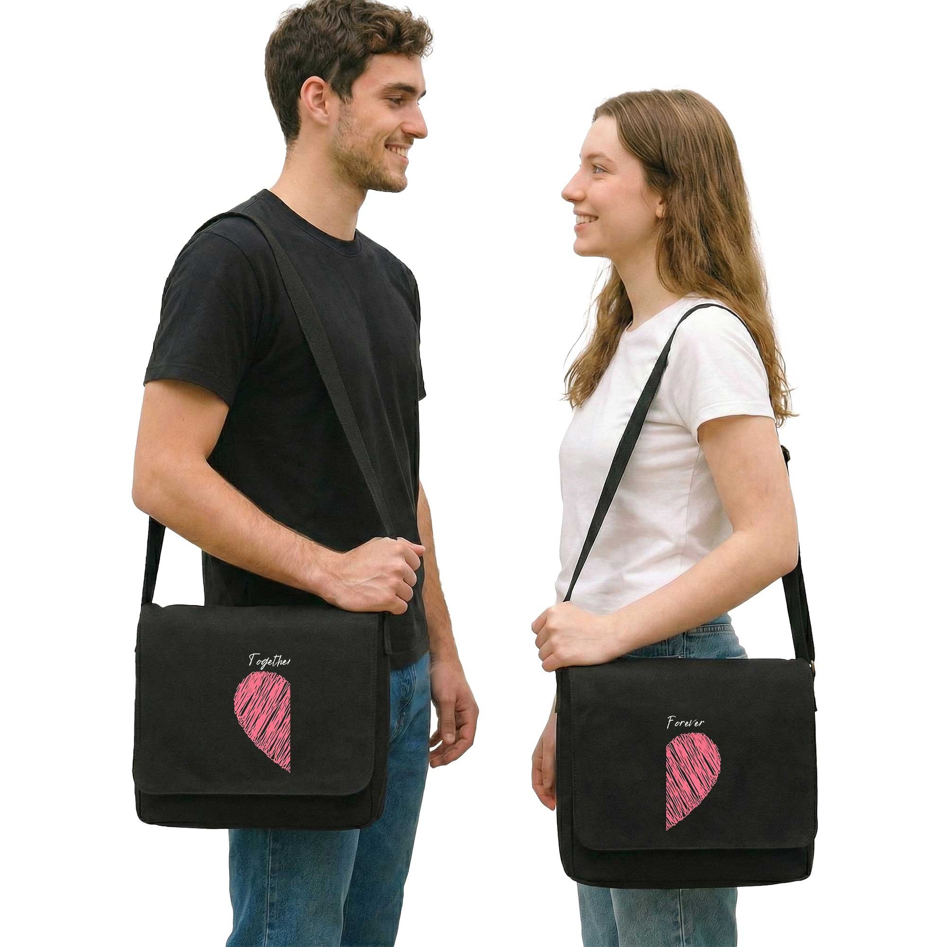 Kalp Together and Forever Sevgili Çift Postacı Çantası Kanvas