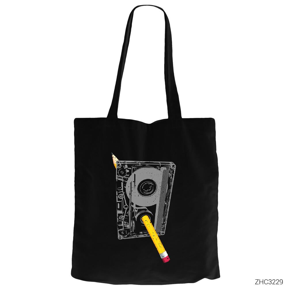 Kaset Siyah Fermuarlı Bez Çanta Gabardin