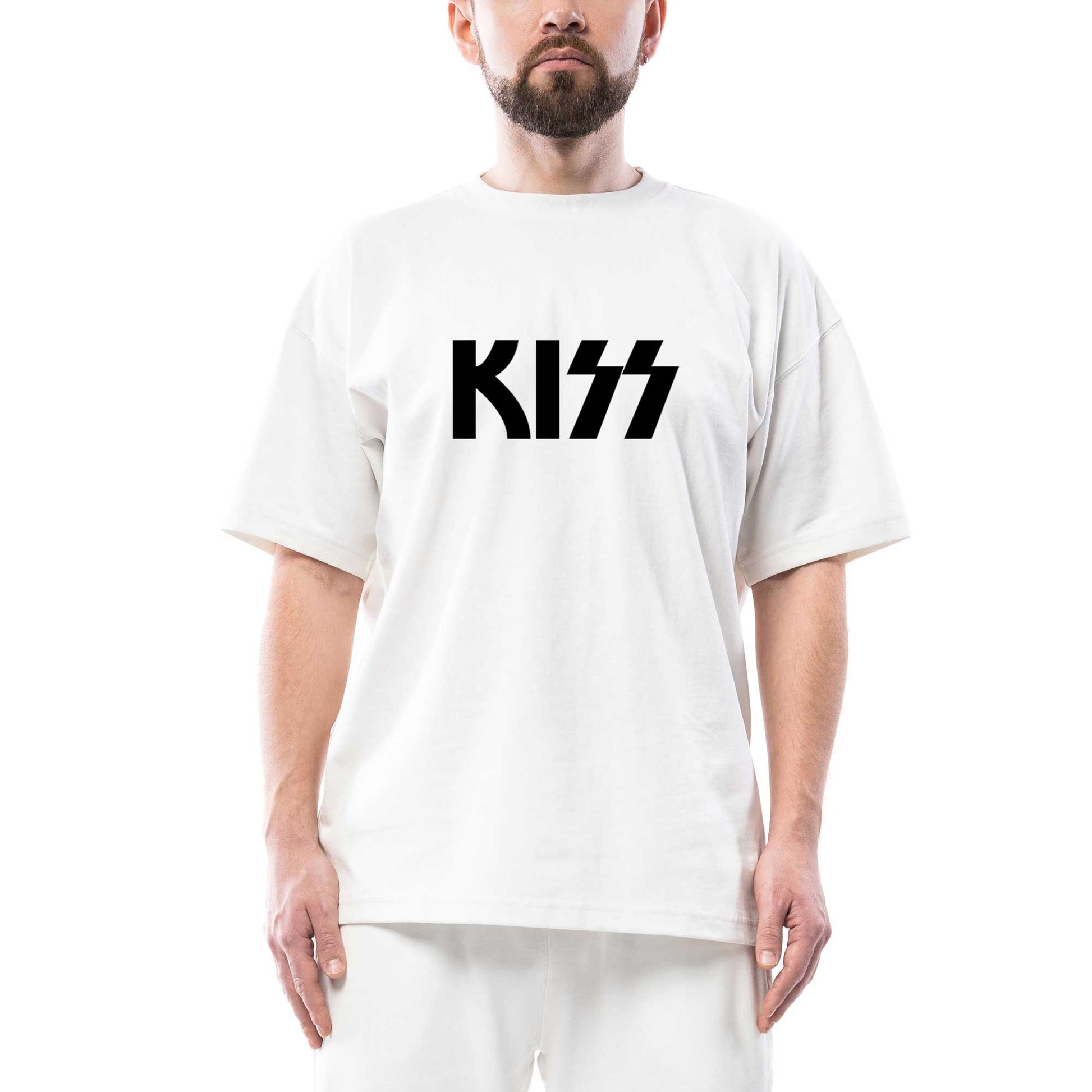 Kiss Logo 2 Oversize Beyaz Tişört
