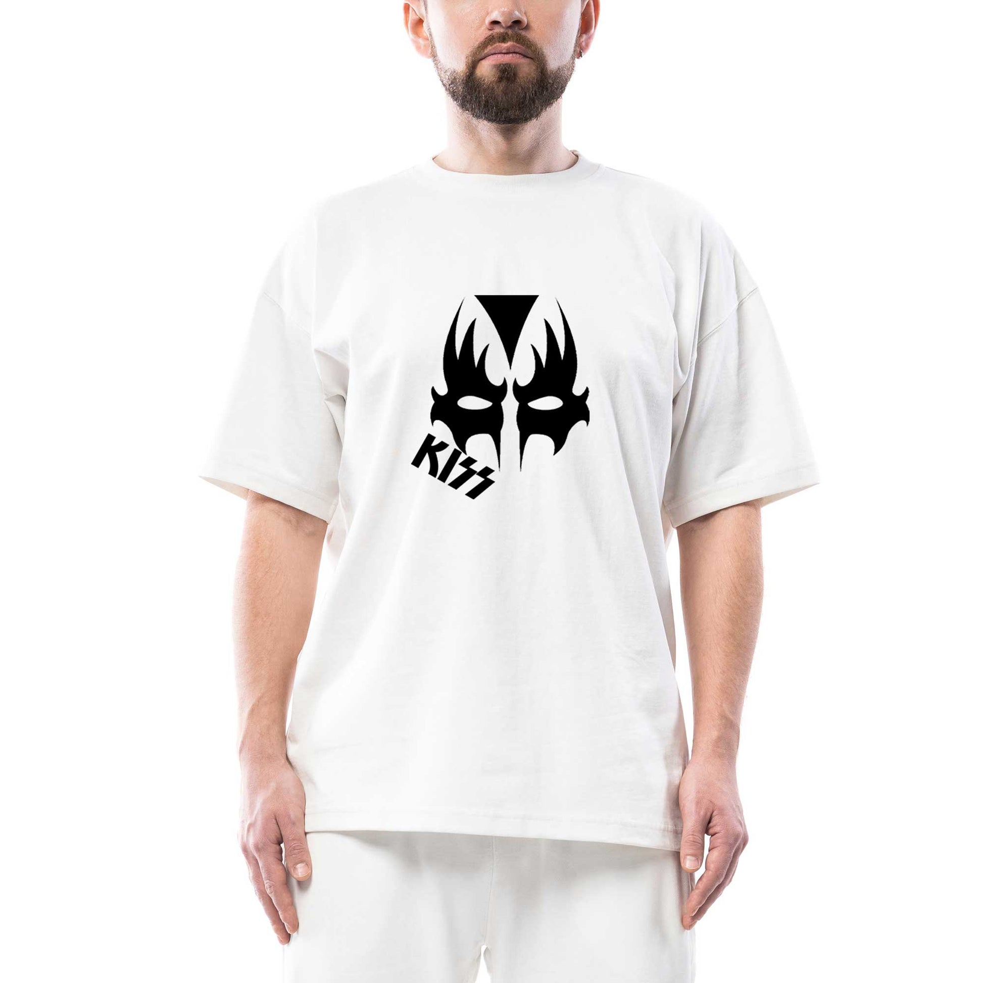 Kiss Mask Oversize Beyaz Tişört