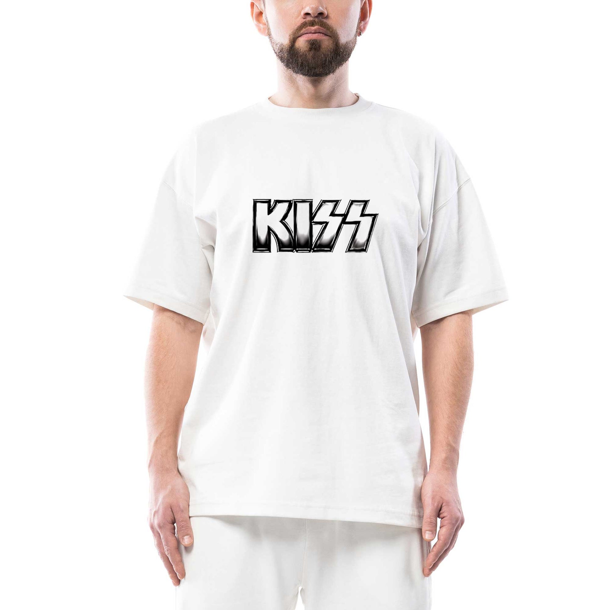 Kiss Metalic Logo Oversize Beyaz Tişört
