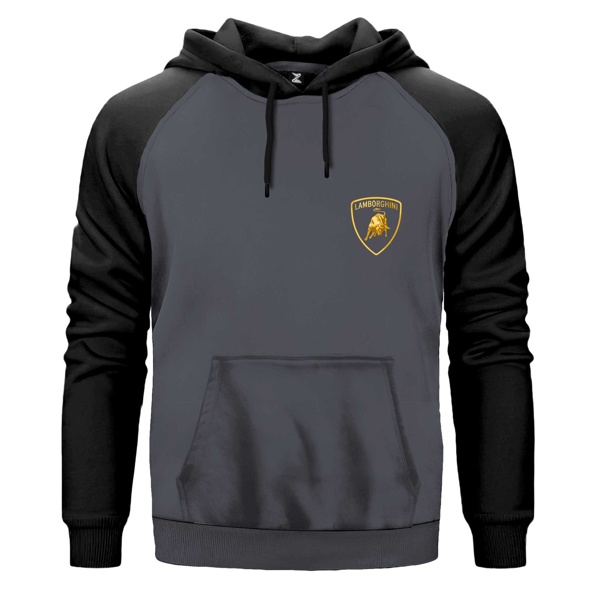 Lamborghini Gold Logo Çift Renk Reglan Kol Sweatshirt Kapşonlu