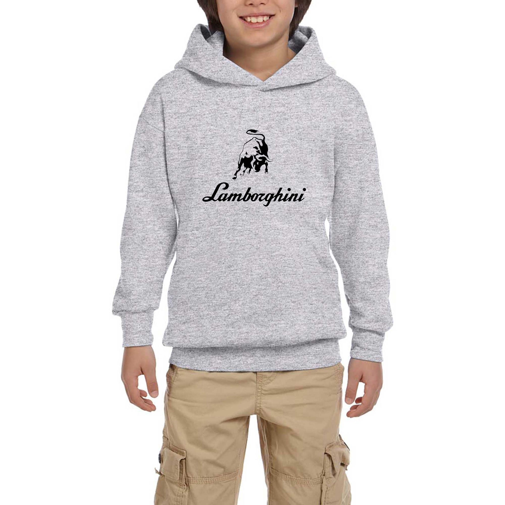 Lamborghini Text Logo Gri Çocuk Kapşonlu Sweatshirt