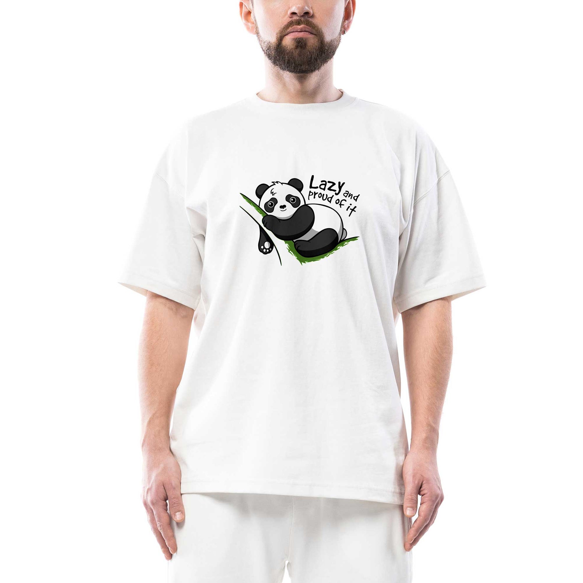 Lazy And Proud of It Oversize Beyaz Tişört