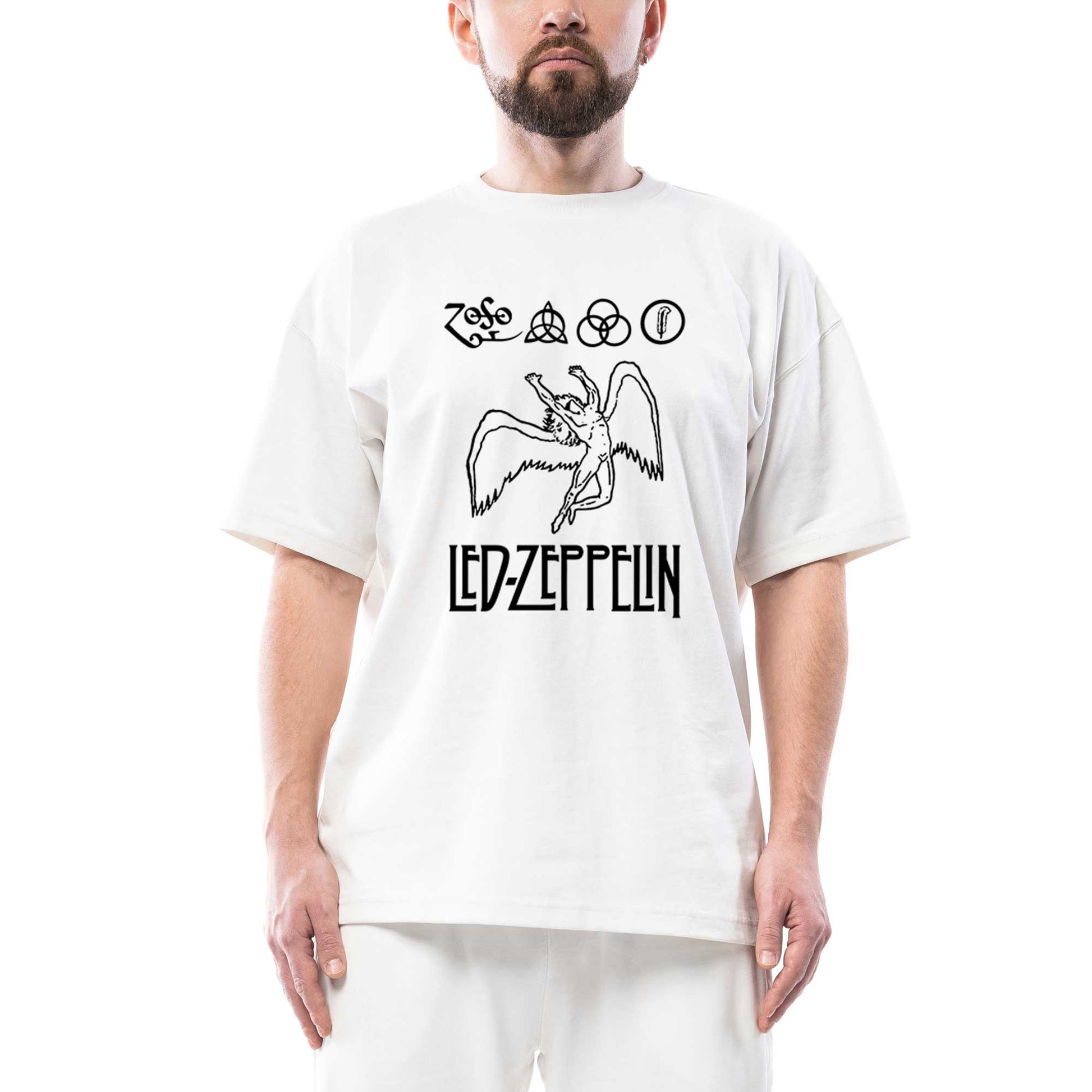 Led Zeppelin Zoso Oversize Beyaz Tişört
