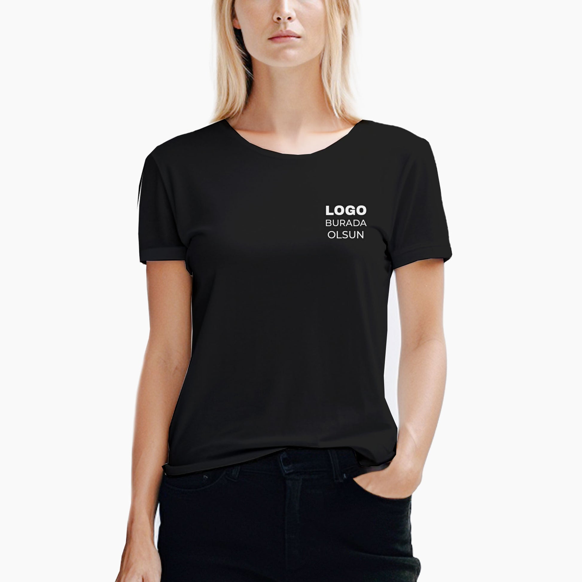 Logo Baskılı Kadın Siyah Tişört Toptan
