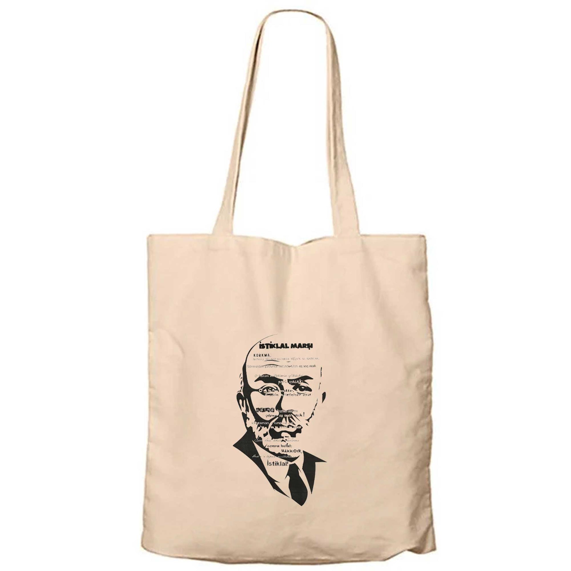 Mehmet Akif Ersoy İstiklal Marşı Krem Fermuarlı Bez Çanta Gabardin