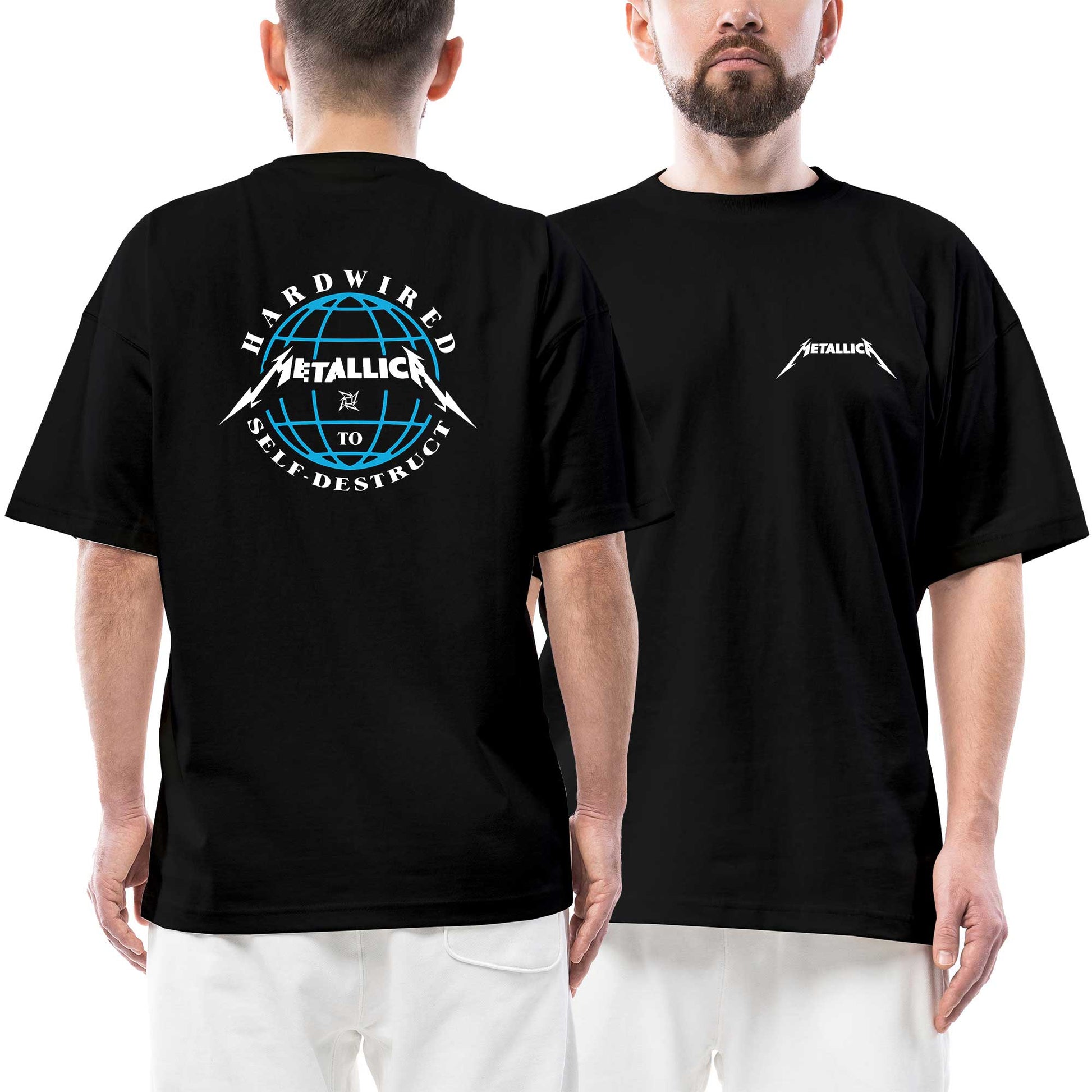 Metallica Hardwired Ön Arka Baskılı Siyah Oversize Tişört