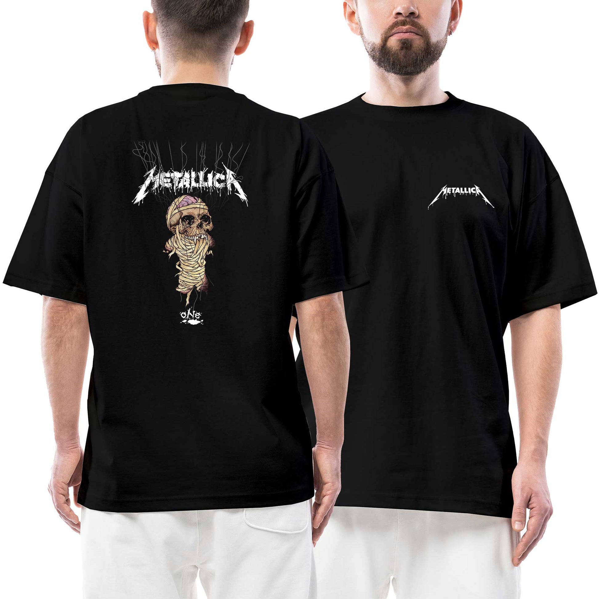 Metallica One Limited Edition Kapşolu Sweatshirt Ön Arka Baskılı Siyah Oversize Tişört