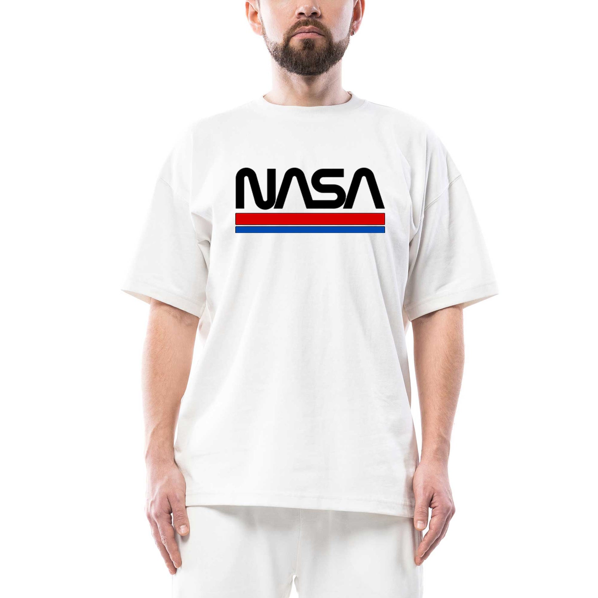 Nasa Red Blue Oversize Beyaz Tişört