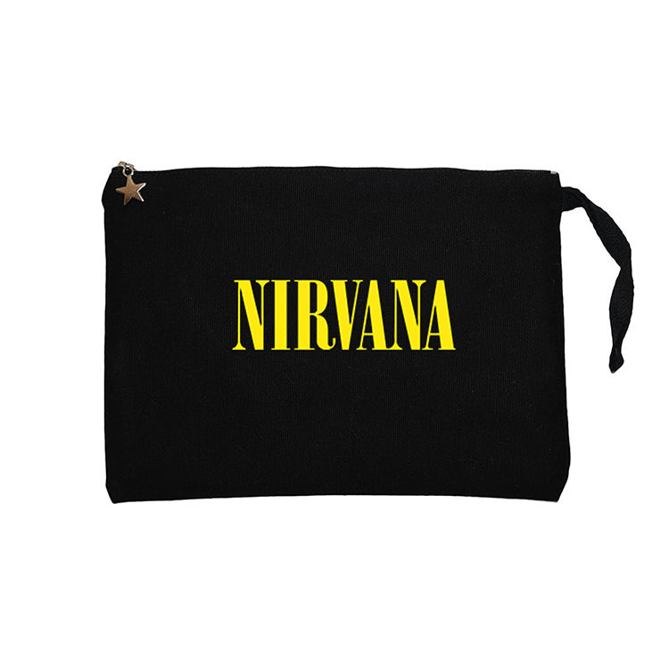 Nirvana Yazı Sarı Siyah Clutch Astarlı Cüzdan / El Çantası