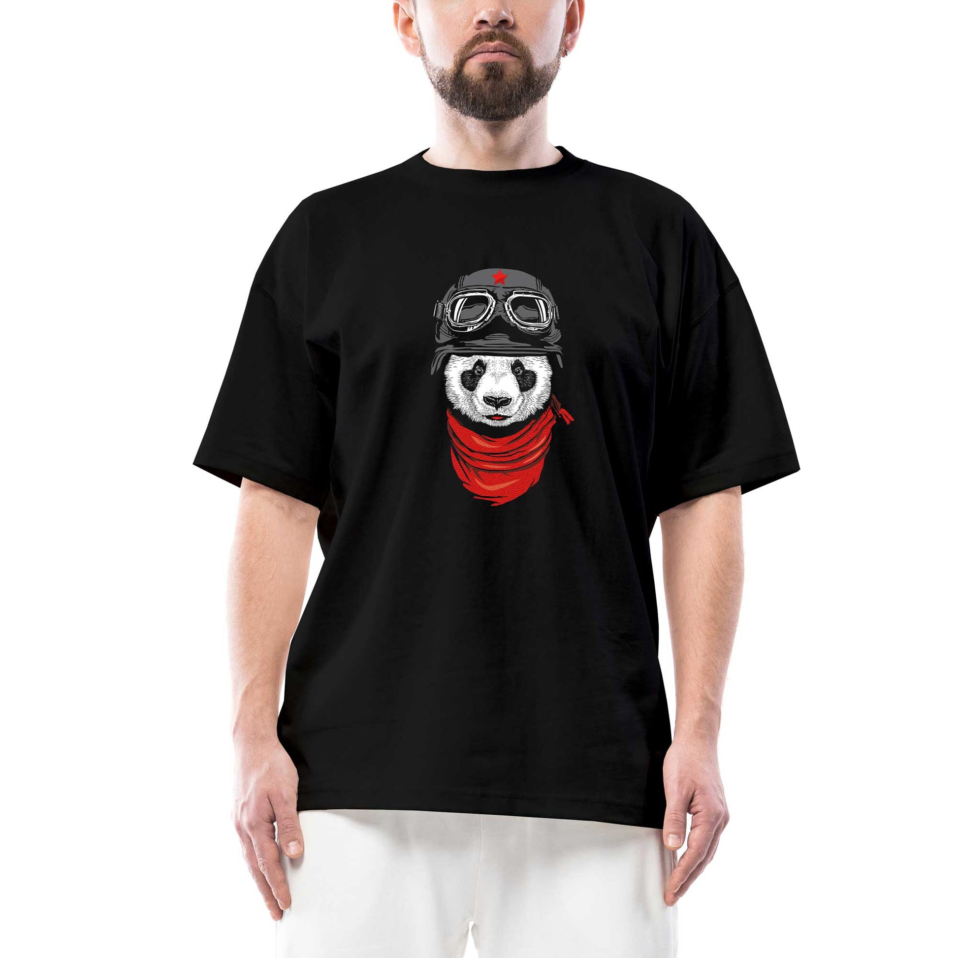Panda Pilot Oversize Siyah Tişört