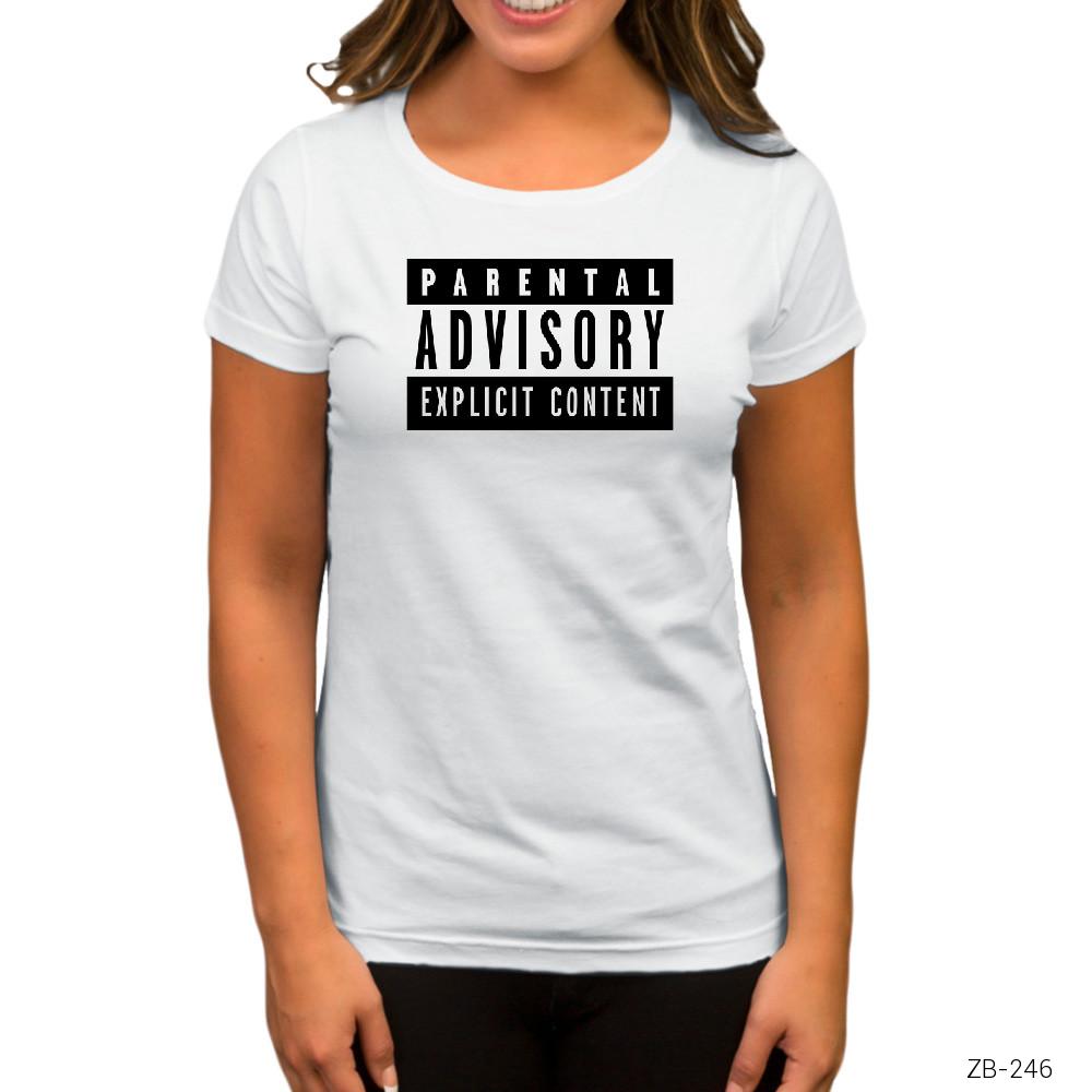 Parental Advisory Beyaz Kadın Tişört