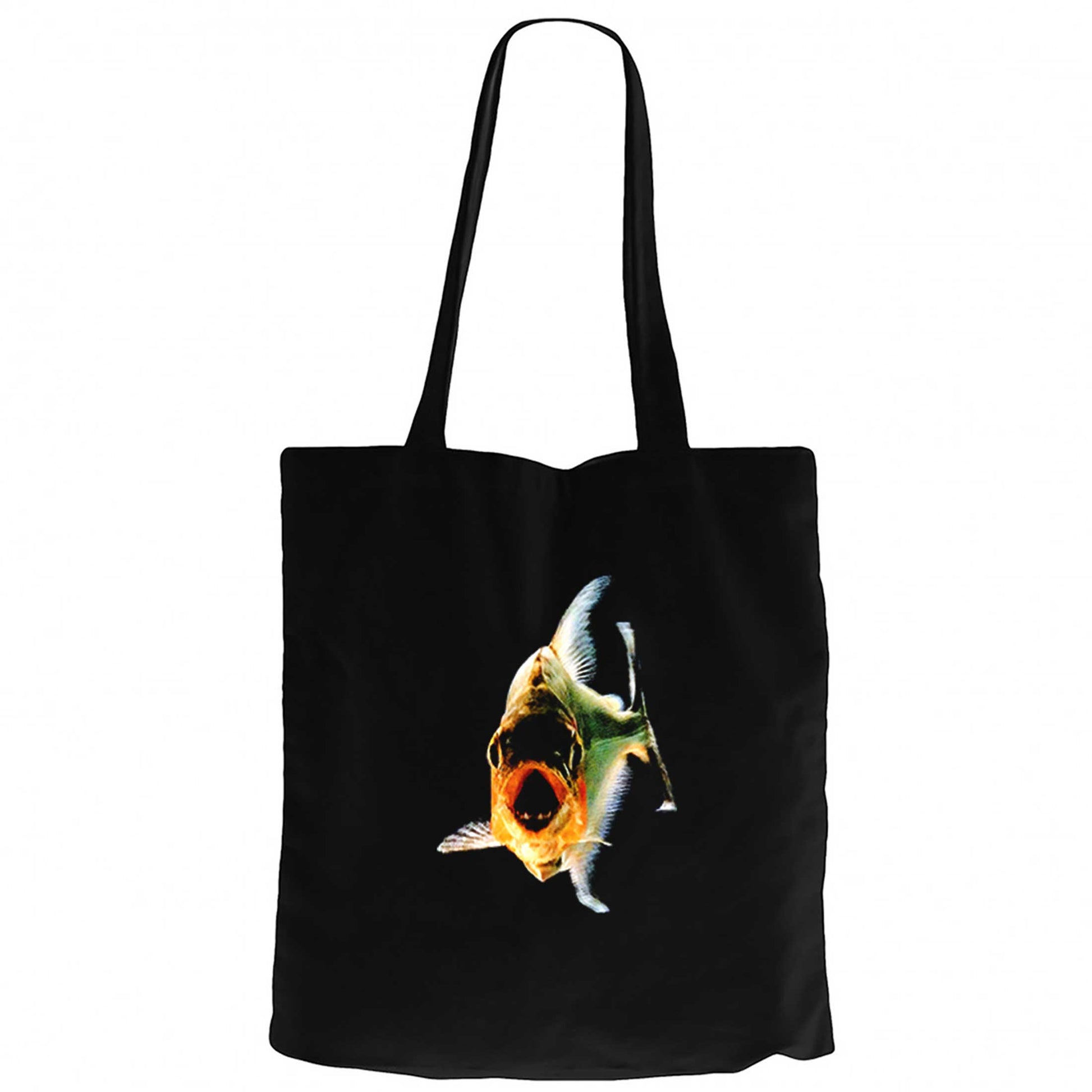 Pirana Balık Siyah Fermuarlı Bez Çanta Gabardin
