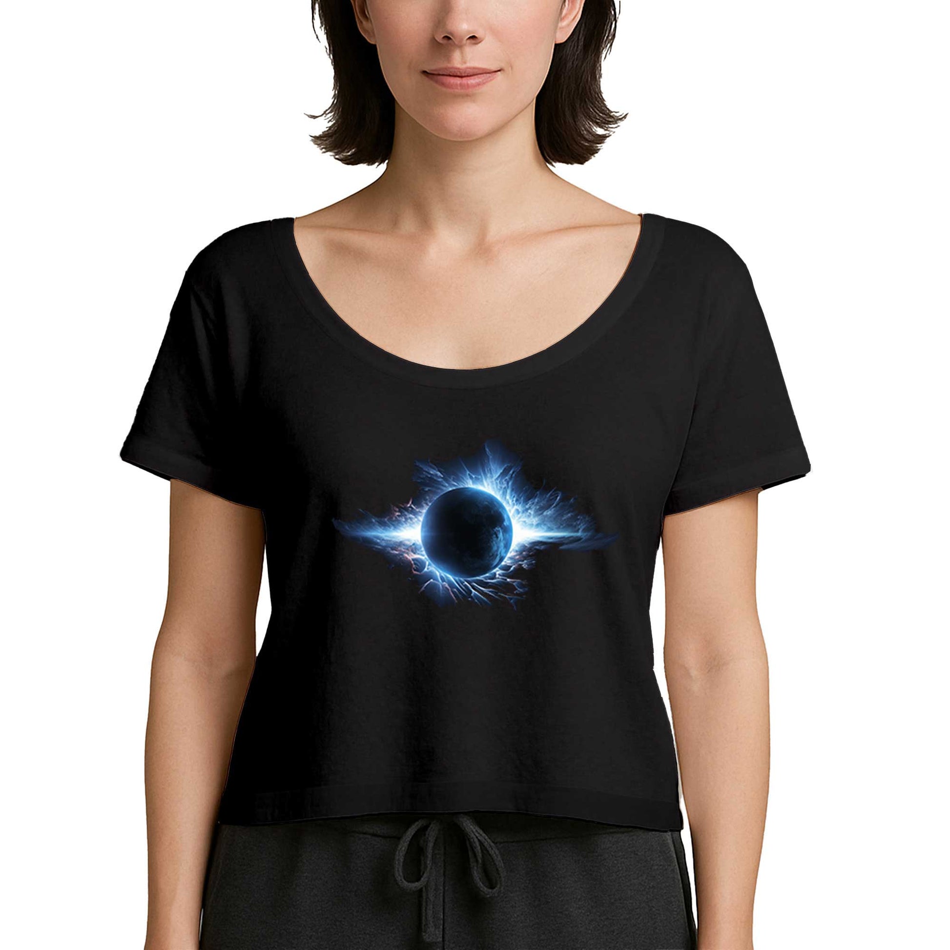 Planet Charged With Blue Energy Siyah Kadın Tişört