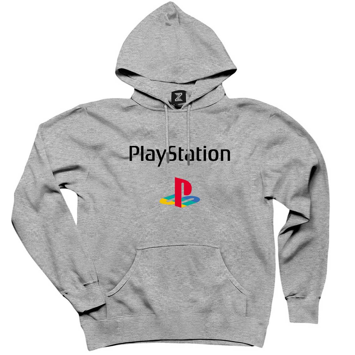 Playstation Logo Text Color Gri Kapşonlu Sweatshirt Hoodie